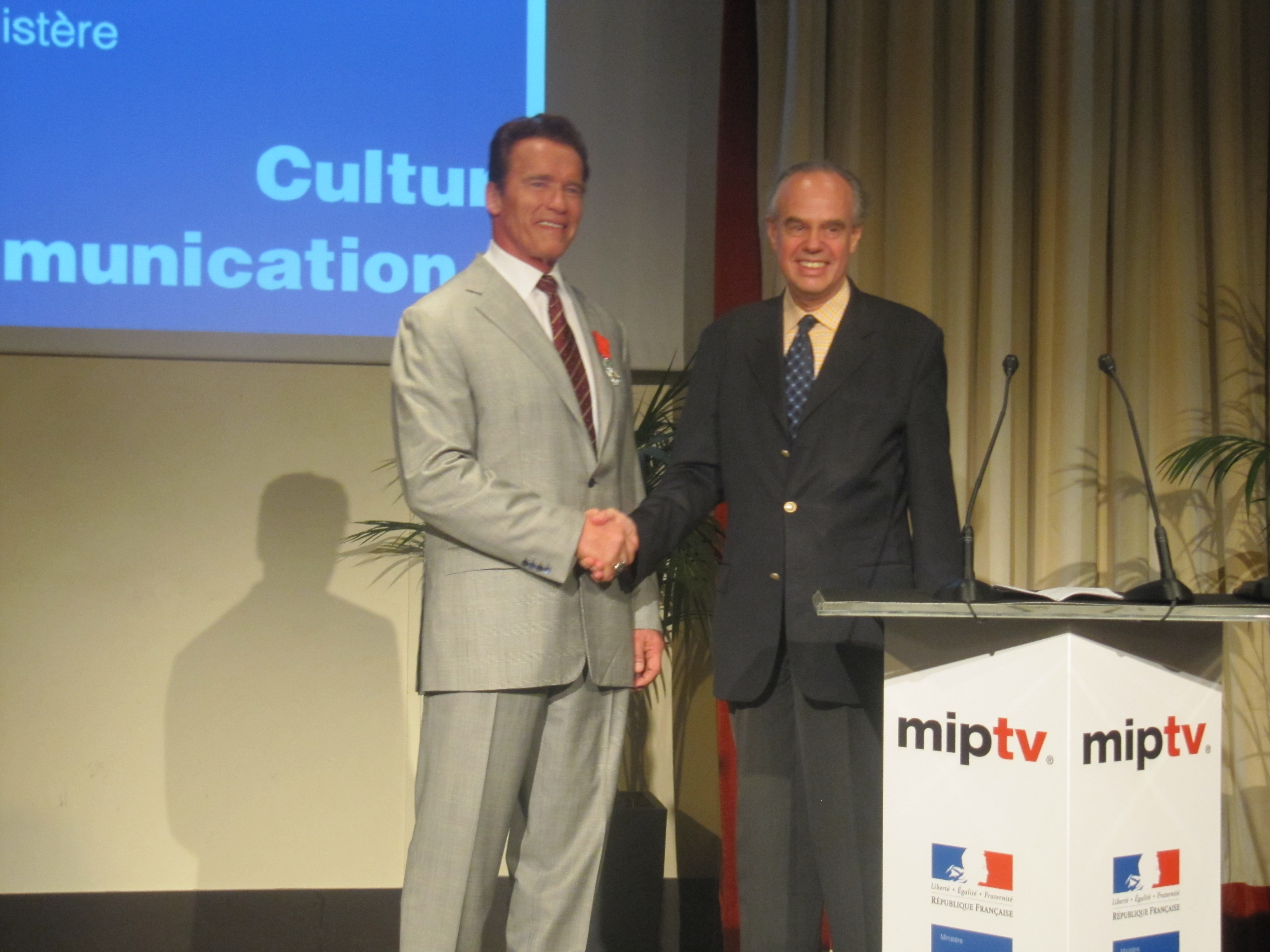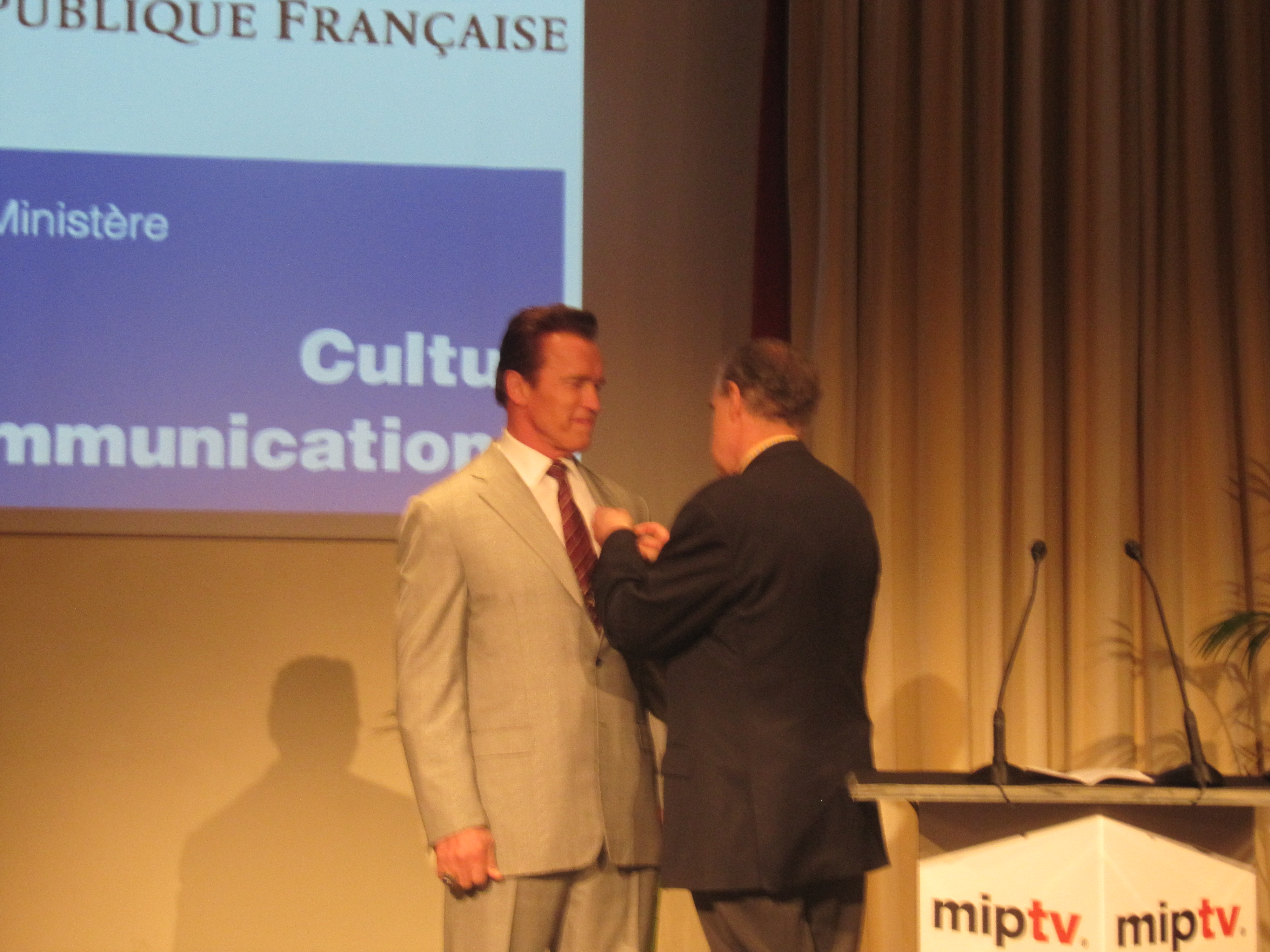 MIPTV CANNES : Arnold SCHWARZENEGGER reçoit la Légion d’Honneur des mains de Frédéric MITTERAND…