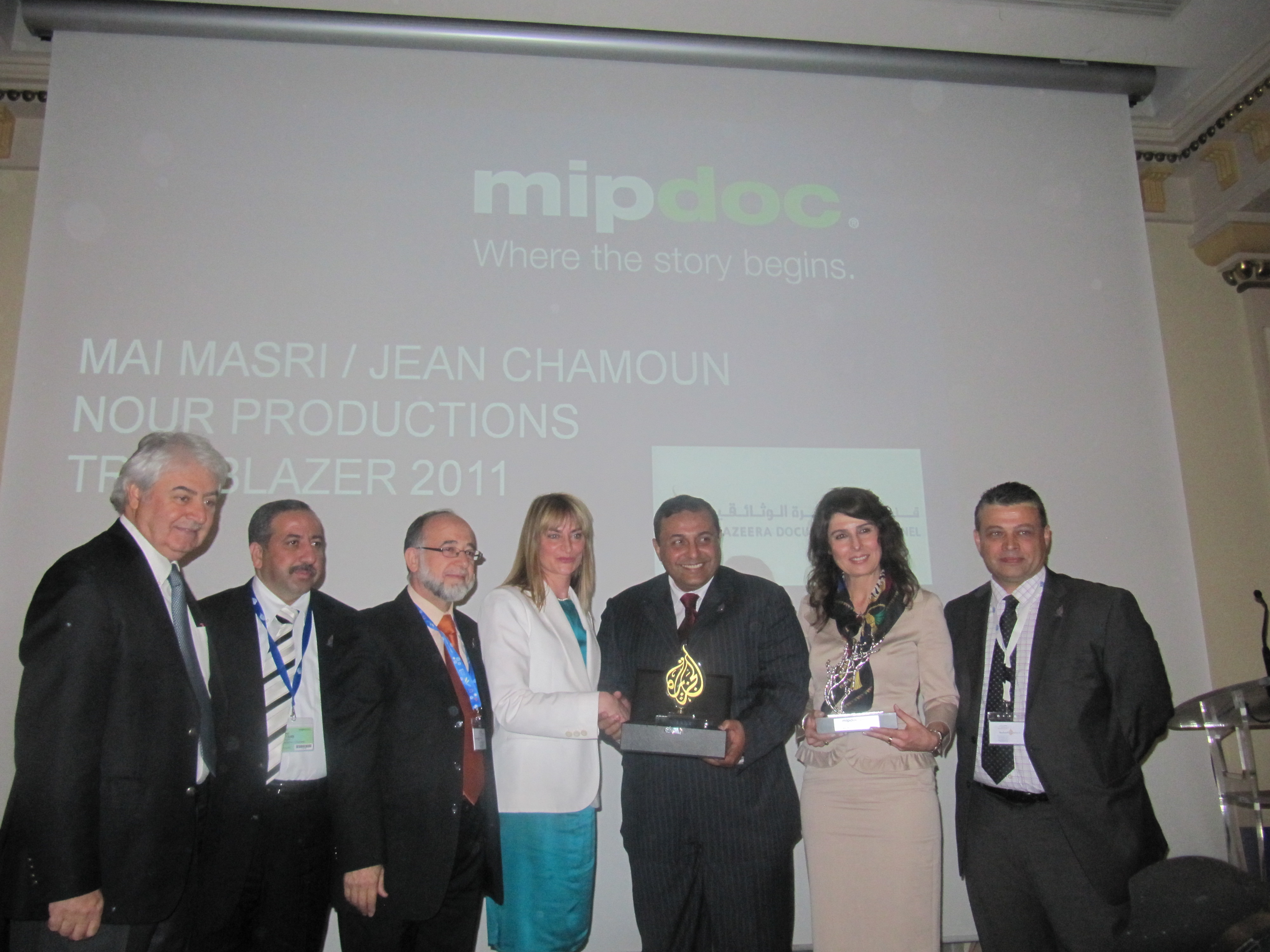 Les réalisateurs Jean Chamoun et Mai Masri ont remporté le MIPDoc international Trailblazer Award pour leur engagement de vingt années dans la réalisation de documentaires relatant les événements quotidiens de leurs pays respectifs, le Liban et la Palestine.