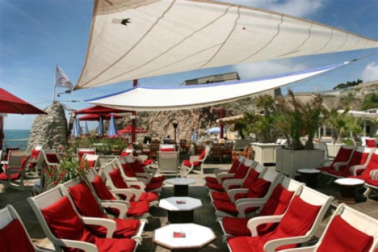 Sur la première terrasse attribuée au bar cocktails et coupes glacées, des tables basses et de confortables transats vous y attendent, la seconde terrasse est réservée quant à elle au restaurant qui y dispose ses tables tout le long des rambardes où frappent les vagues.