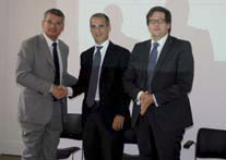 De gauche à droite : Me Pascal DANIEL Président d’INFOGREFFE, Mr Valerio ZAPPALA DG de l’INFOCAMERE et Me Didier OUDENOT Président du Conseil National.
