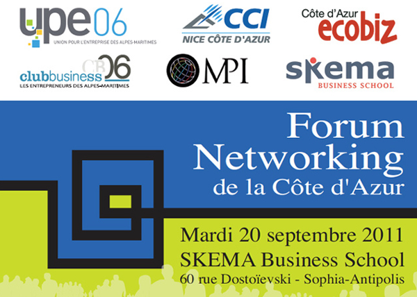 Succès confirmé pour la troisième édition du Forum Networking co-organisé par L’UPE 06, la Chambre de Commerce et d’Industrie Nice Côte d’Azur, Ecobiz Côte d’Azur, MPI (Meeting Professionals International), le Club Business 06 et SKEMA Business School, le mardi 20 septembre 2011 à SKEMA Business School, en partenariat avec la BNP Paribas, la Caisse des Dépôts et avec le soutien de Malongo.