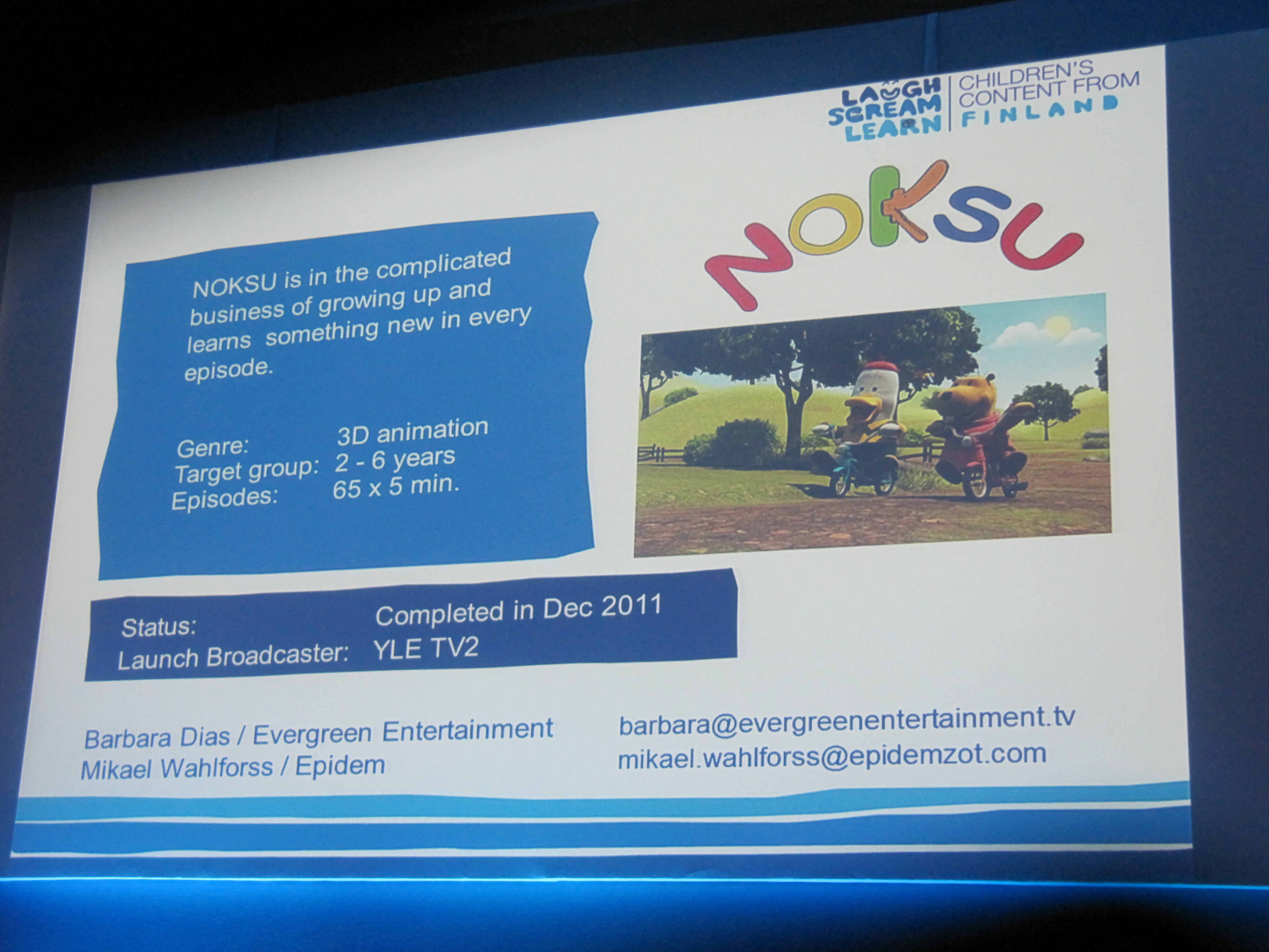 De nous montrer 9 contenus pour enfants de Finlande, ils sont tout frais, ils viennent de sortir de l’oeuf et surtout ils sont bien développés . A la fin des petites projections Laurine GARAUDE a souhaité nous laisser exprimer nos idées et notre ressenti à propos de ces contenus Finnois (Finlandais) et Nordiques vus ensemble.Je peux vous dire que les premières impressions étaient très positives.Les sentiments, le rêve, les responsabilités…