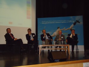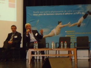 Dans un premier temps nous avons pu assister à une table ronde avec pour invités intervenants; Jacques LESIEUR Président de la Commission Enseignement Supérieur Innovation Recherche de l’UPE 06, représentant Yvon GROSSO, Président de l’UPE06,