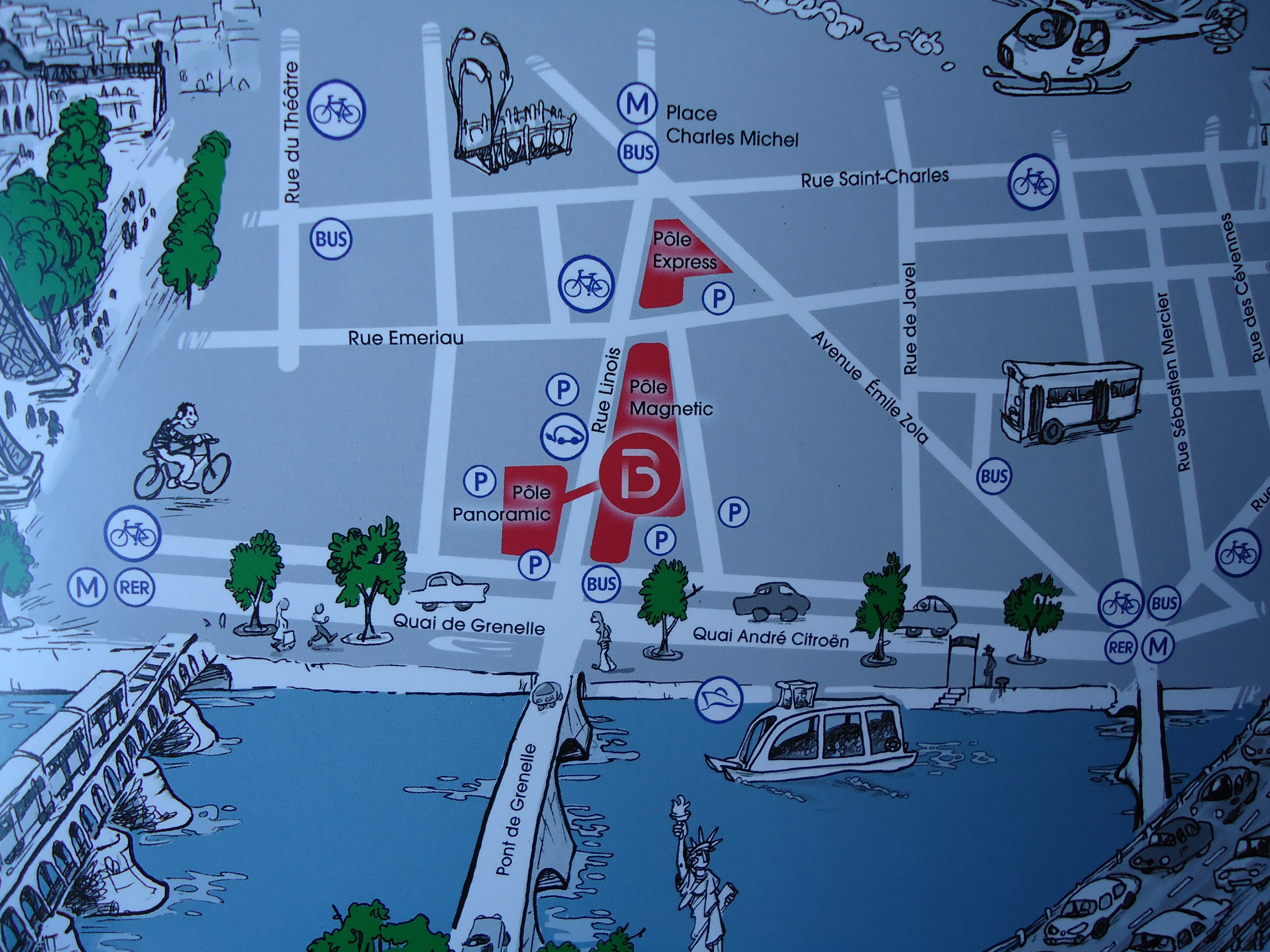 On peut dire que tous les transports mènent à Beaugrenelle; par le pont de Grenelle, les berges de la Seine, la triple voie qui la longe, la navette fluviale, le RER et le METRO, les lignes de bus, les Velib’, les Autolib’ sans oublier ses 1100 places de parking.