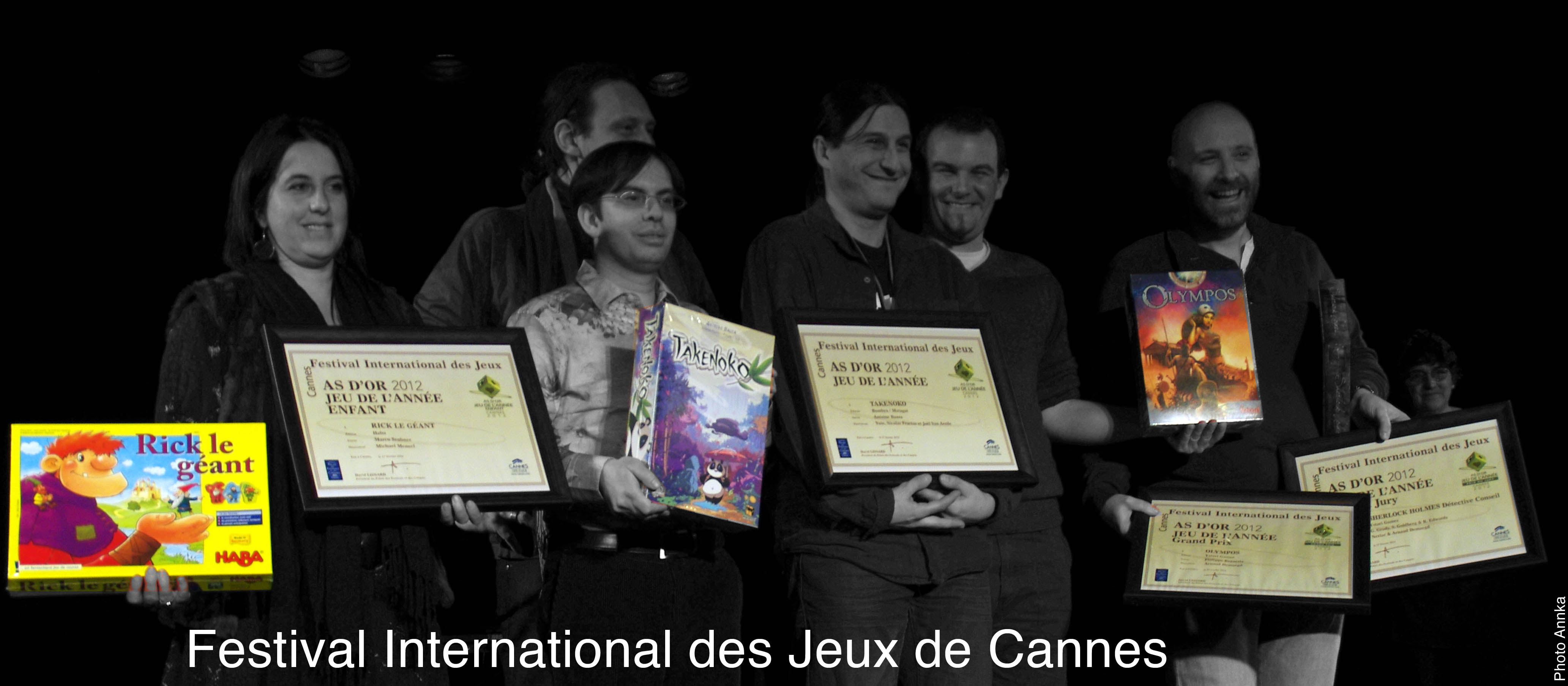 Quant à L’As d’Or – Grand Prix, nouvelle distinction 2012, il est remis à « Olympos » de Philippe Keyaerts Chez Ystari, pour son travail d’auteur remarquable sur un jeu de développement, de conquêtes, de « civilisation » et un Prix Spécial du Jury pour la réédition de « Sherlock Holmes détective conseil » de G. Grady, S. Goldberg & R. Edwards qui honore les qualités de jeu, de sa nouvelle édition.