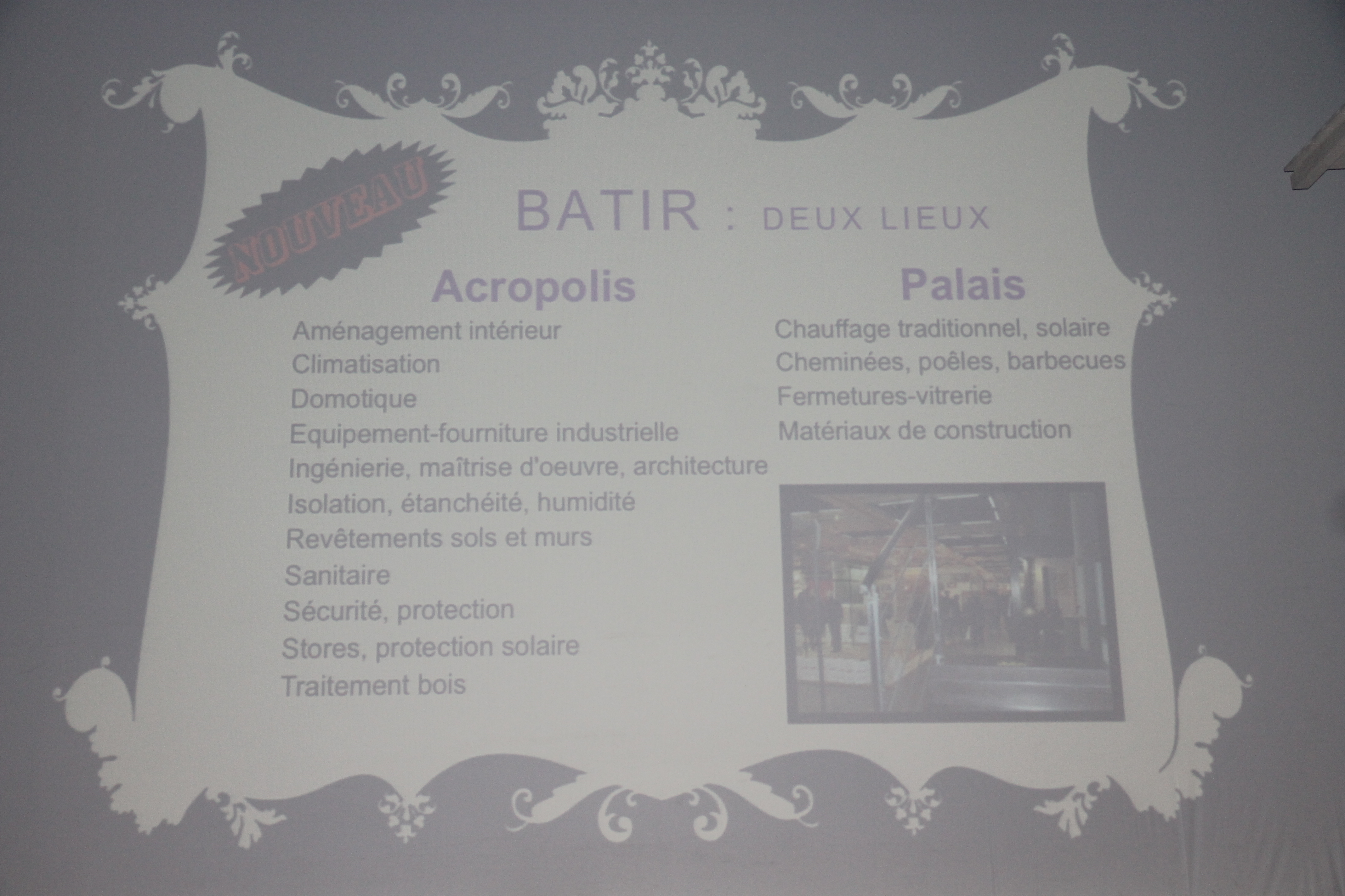 Bâtir se tiendra à la fois à l’espace Méditerranée du Palais des Congrès Acropolis pour tout ce qui est : Aménagement intérieur, Climatisation, Isolation, étanchéité et traitement de l’humidité, Revêtements sols et murs, Sanitaire, Sécurité, protection, stores, protection solaire, traitement du bois.