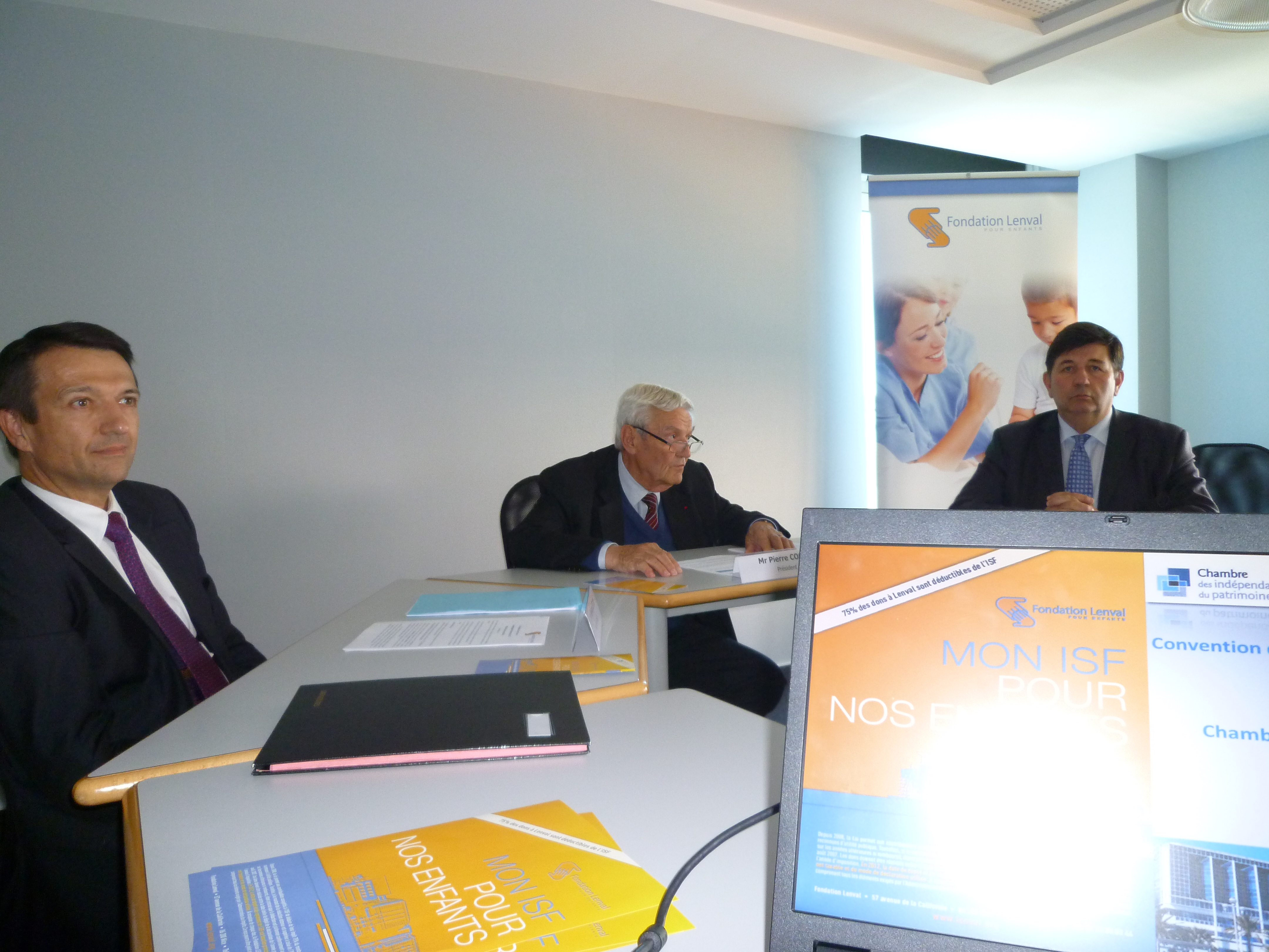 – La Chambre des Indépendants du Patrimoine s’engage à inciter ses adhérents à diffuser une information auprès de leurs clients sur les possibilités de dons à la Fondation LENVAL et sur les avantages fiscaux qui y sont attachés (IRPP, ISF, IS et droits de succession), et également à relayer auprès de leur clientèle la campagne ISF 2012 de la Fondation LENVAL.