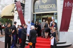 l’avez gagné Madame, et nous sommes là ce soir tous autour de vous, votre Famille NEGRESCO vous en témoigne »…. » Vous avez su préférer ce joyau d’architecture néo-classique et vous lui avez imprimé aussi un caractère bien trempé. Nous vous remercions tous Madame, pour la détermination qui est la vôtre et combien vous travaillez afin de préserver ce patrimoine, votre Maison. Je salue ici ce soir Messieurs les élus, Monsieur le Président du Conseil Général, Messieurs les Députés, Monsieur Le Député-maire de la Ville de Nice, je suis vraiment très heureux de vous saluer ce soir, et merci d’être venus, je sais que vous avez un emploi du temps surchargé »… « J’ai également plaisir à saluer ce soir tous nos partenaires et ils sont nombreux qui se sont associés à l’organisation de cette soirée pour qu’elle soit réussie et également pour cette année du centenaire »…