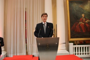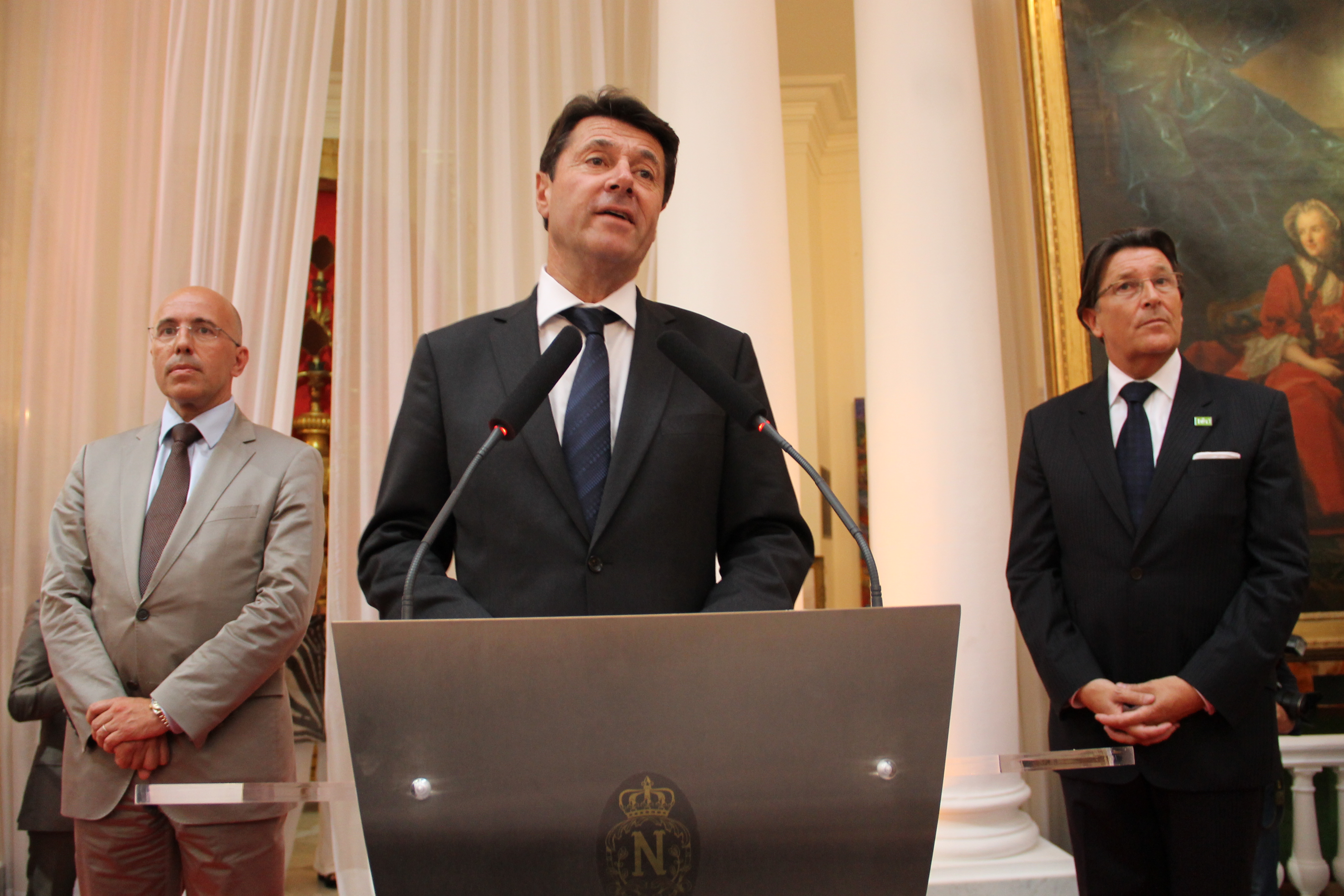 Je souhaiterais tout simplement adresser un message de reconnaissance et de gratitude à toute la famille qui a fondé le Negresco, depuis Monsieur NEGRESCO, Monsieur MESNAGE votre Père, à Paul AUGIER bien sûr et naturellement Jeanne AUGIER qui est l’esprit, l’âme et le cœur de ce lieu mythique, magique de la Côte d’Azur. Le Negresco sans la Côte d’Azur ne serait pas ce qu’il est, et la Côte d’Azur sans le Negresco n’aurait sans doute pas connu cette histoire magique et merveilleuse, vos histoires sont liées, vous avez tellement apporté à la Côte d’Azur, et la Côte d’Azur, les Alpes Maritimes, ce soir en ce moment qui réuni beaucoup de ceux qu’elle garde, les forces vives de notre département, vous transmet du fond du cœur sa gratitude et sa reconnaissance et enfin chère Jeanne AUGIER un mot plus personnel, en tant que Député à l’Assemblée Nationale je suis fier de dire que je suis le Député de la Circonscription qui abrite le Negresco. Bon Anniversaire » (plus en audio)