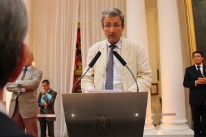 Je veux en revanche vous dire ce soir tout ce que le Negresco représente pour Nice et pour les Niçois, il y a d’abord dans ce Palace comme un aboutissement. Quand les Niçois ont à la fin du XVIII ème Siècle apporté le tourisme balnéaire, ils ont créé une économie nouvelle à partir de rien de connu, il leur a fallu tout construire, tout imaginer, tout concevoir, il leur a fallu trouver les hommes en premier lieu, d’où cette association inattendue et forte improbable entre Niçois et Suisse unis par un même esprit d’innovation, les uns pour les accueillir sur les rives de la Méditerranée et les autres pour les recevoir ». (plus en audio)