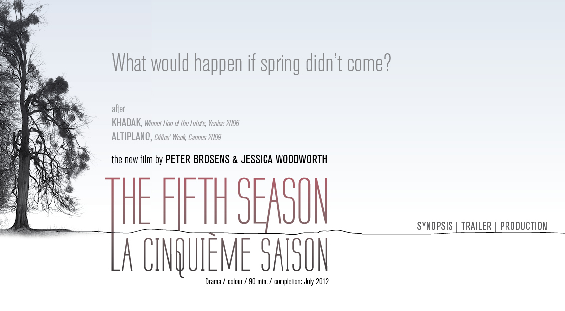 BRUXELLES/VENISE. LA CINQUIÈME SAISON, LE TROISIÈME LONG MÉTRAGE DE PETER BROSENS ET JESSICA WOODWORTH, EST INVITÉ EN COMPÉTITION OFFICIELLE AU 69E FESTIVAL INTERNATIONAL DU FILM DE VENISE (DU 29 AOÛT AU 8 SEPTEMBRE 2012).