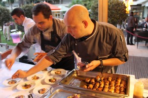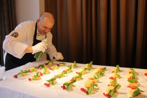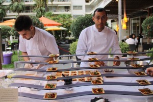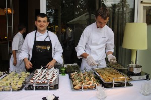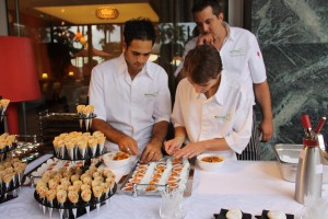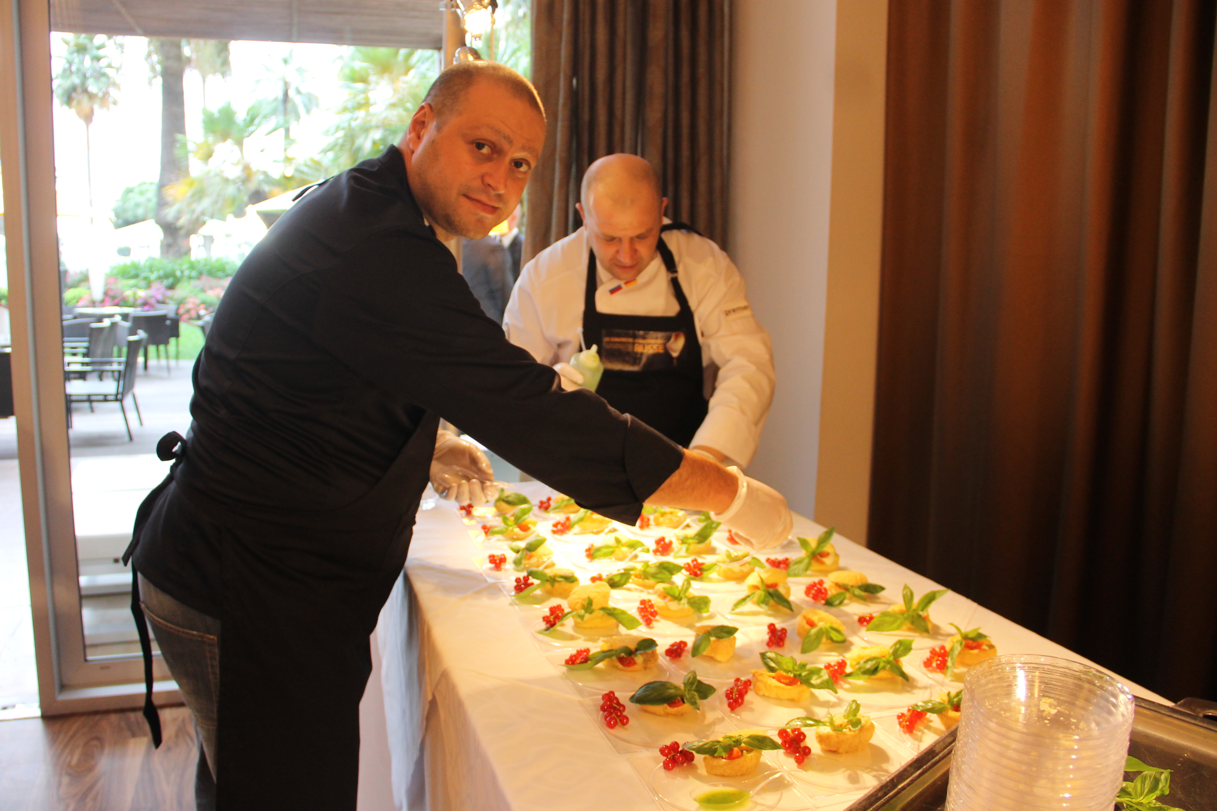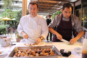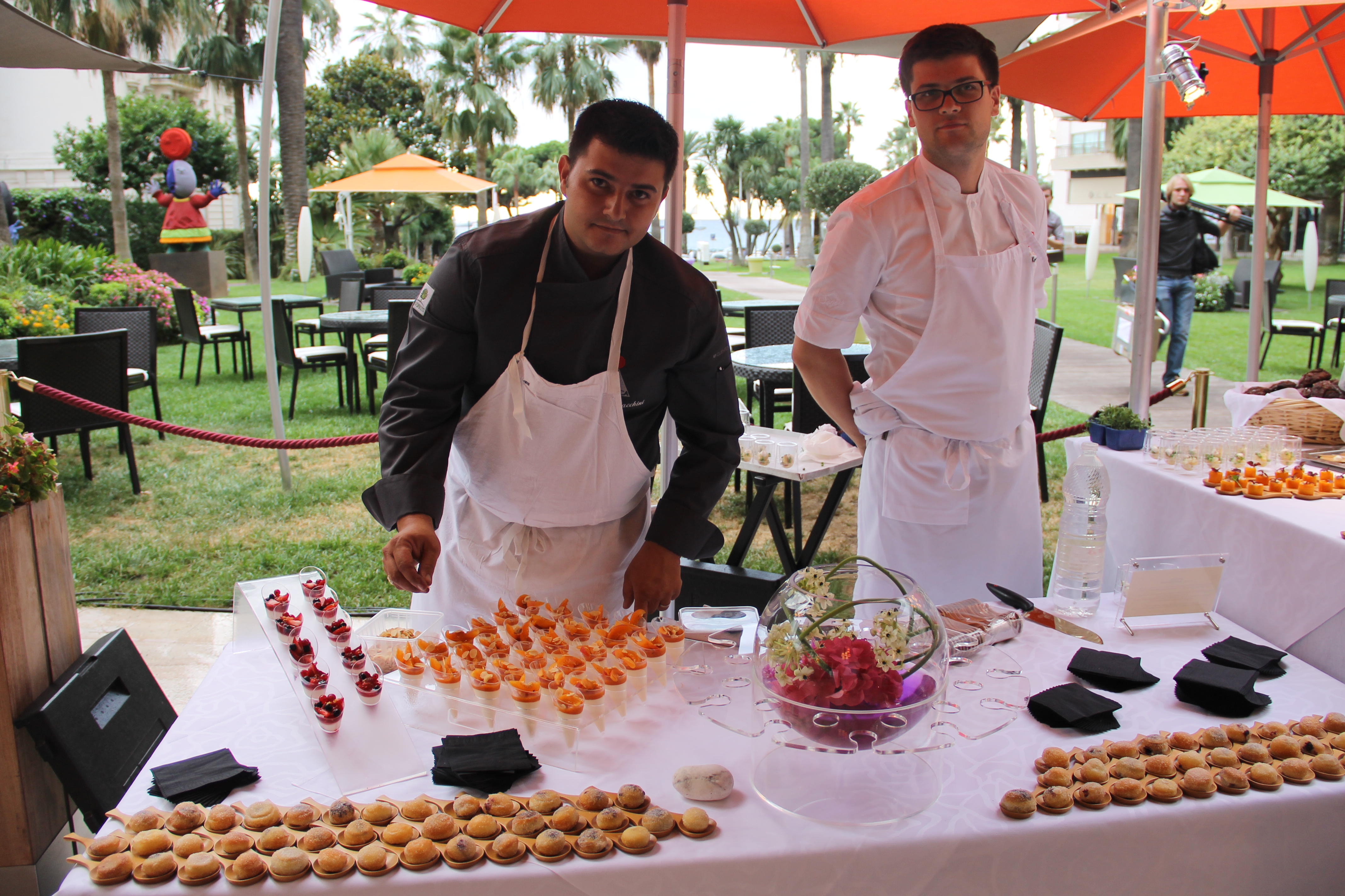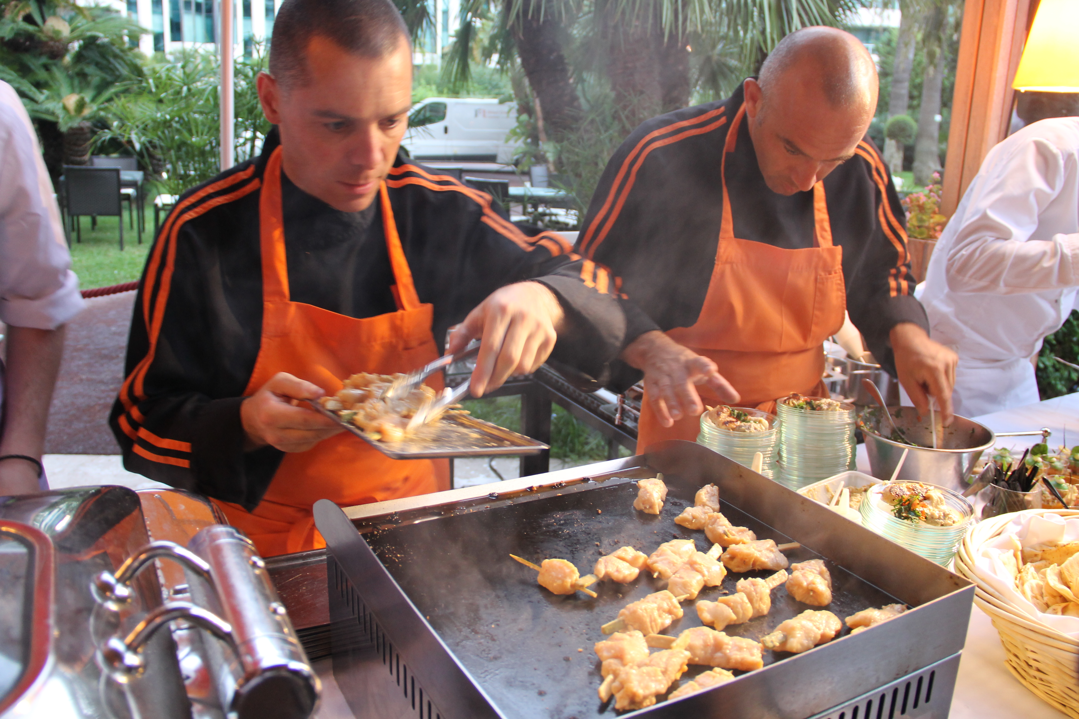 Aussitôt arrivés nous assistons aux préparations sur table à l’intérieur de Grand Hôtel, suite au passage pluvieux de dernière heure.