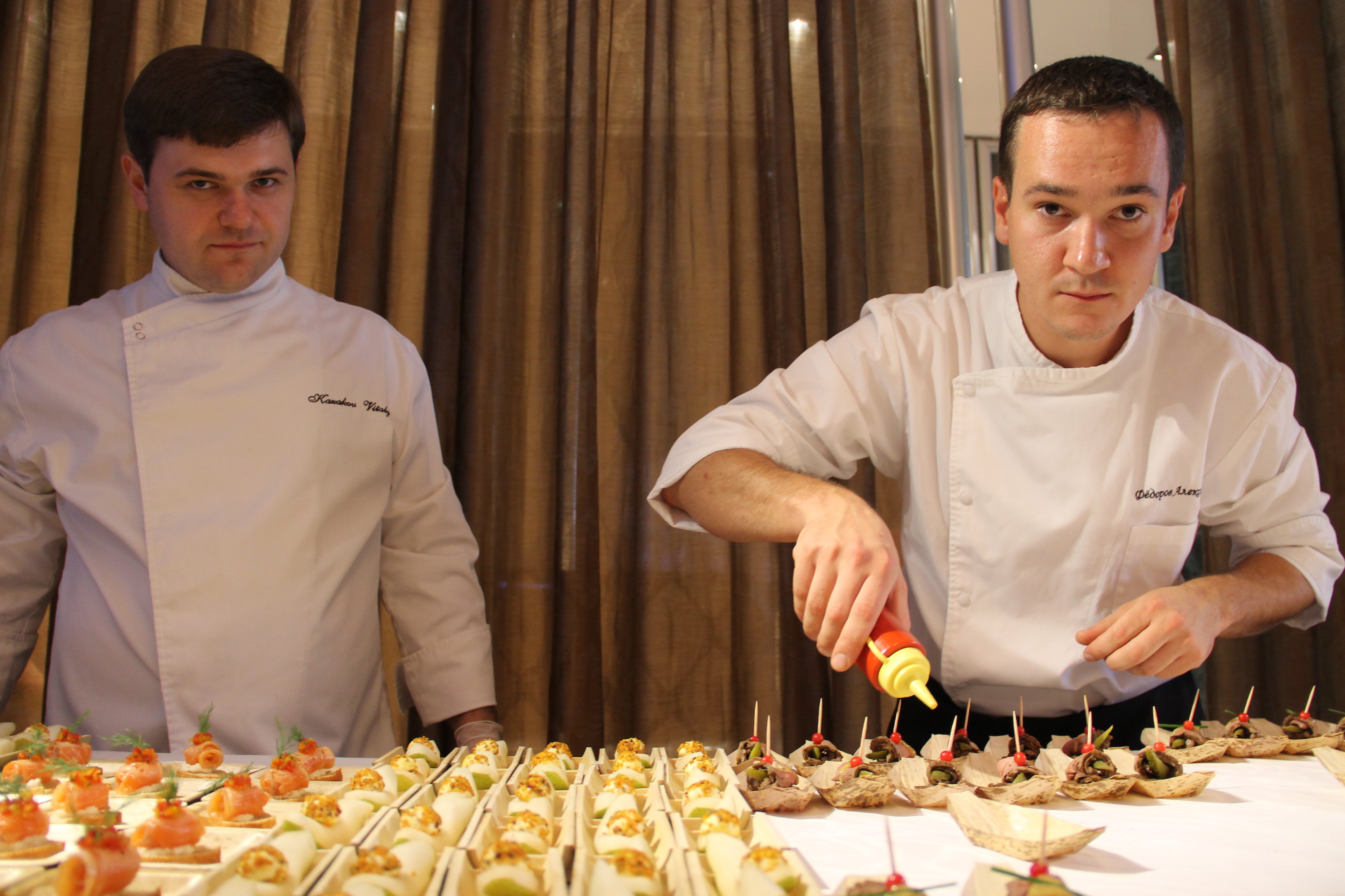 Des chefs russes et des chefs français réunis pour préparer un buffet représentatif de leurs talents respectifs (photos). Un public de gourmets français et russes, des médias de la branche gourmande et de nombreux autres invités avaient l’occasion d’apprécier des plats aux saveurs complexes mais toujours pertinentes et maitrisées, le tout accompagné de Campagne Roederer, de vodka Kremlin et, en invité surprise, un superbe blanc 95% Rolle et 5% Grenache blanc, de la propriété varoise d’Angelina Joly et de Brad Pitt.(photos)