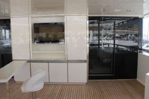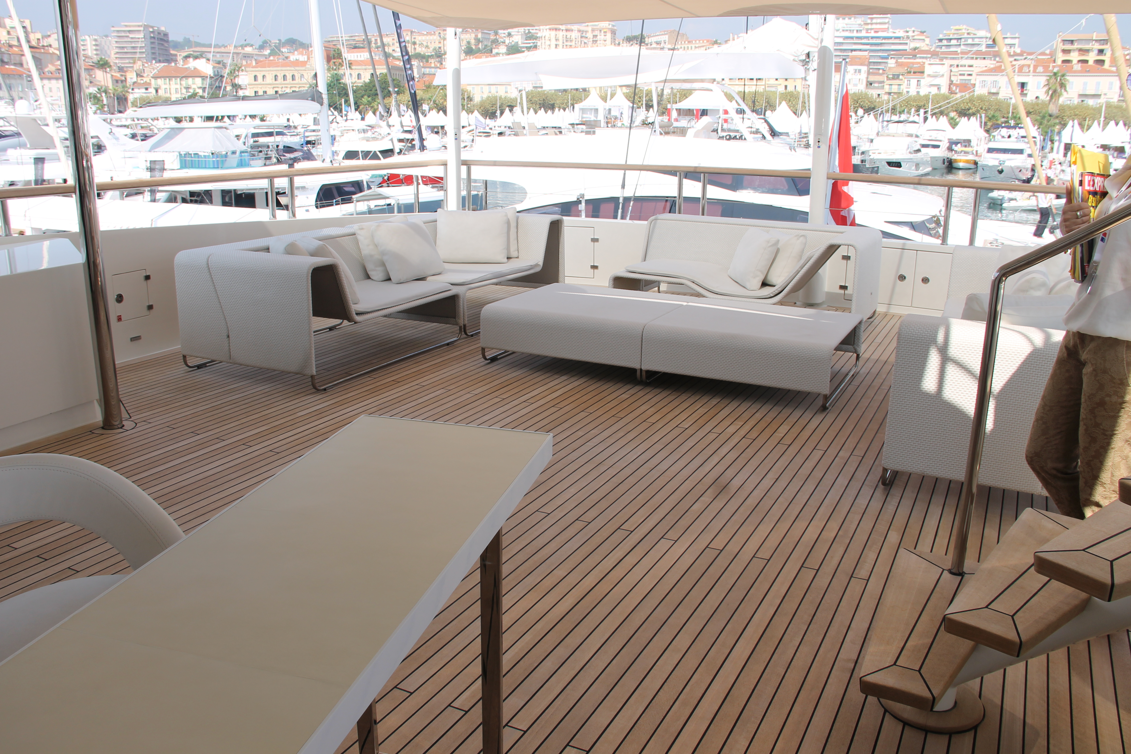 Monsieur Christophe Kloeckner de nous expliquer : « vous vous trouvez aujourd’hui à bord de « la Pellegrina » qui est le premier bateau de ce type de volume pour Couach et qui est aussi l’une de nos plus belles réalisations à ce jour en termes tant de qualité et de finitions que d’accession au niveau de luxe que les plus grands fabricants au monde sont capables d’offrir à leurs clients.