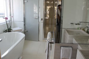 sélection de marbres italiens, sols en cuir, laques, chromes et boiseries raffinées.