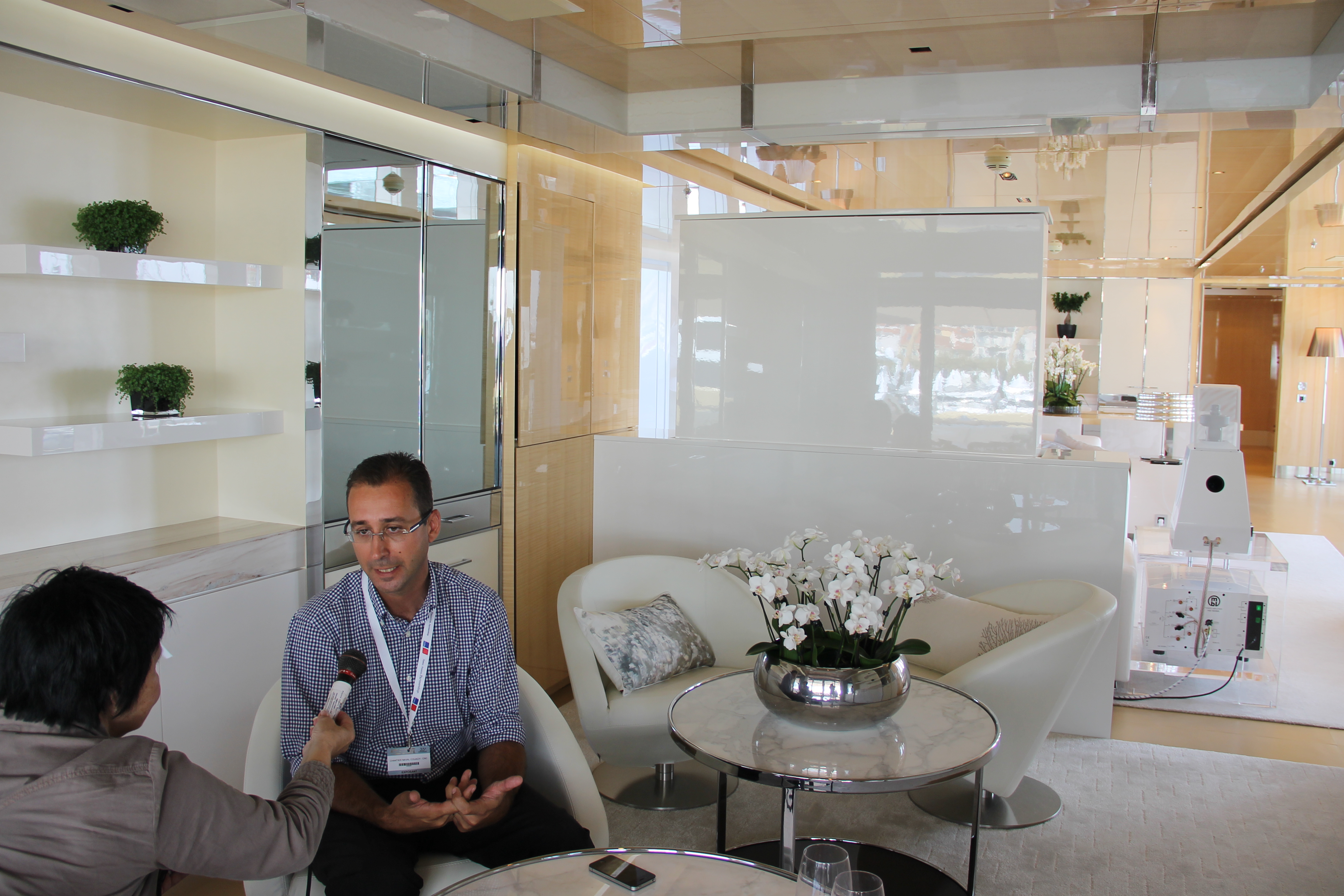 « La particularité de ce chantier est que l’on fabrique des bateaux en matière composite, on est quasiment le seul chantier au monde à être capable de réaliser ce type de volume et ce client Ukrainien a décidé d’investir lourdement aussi dans une décoration, nous avons du faire appel à Monsieur Fantini qui est un décorateur de renom avec à l’actif beaucoup de bateaux de ce type de taille pour venir nous assister dans l’aspect décoration… » suite de l’ interview de Christophe KLOECKNER en audio…