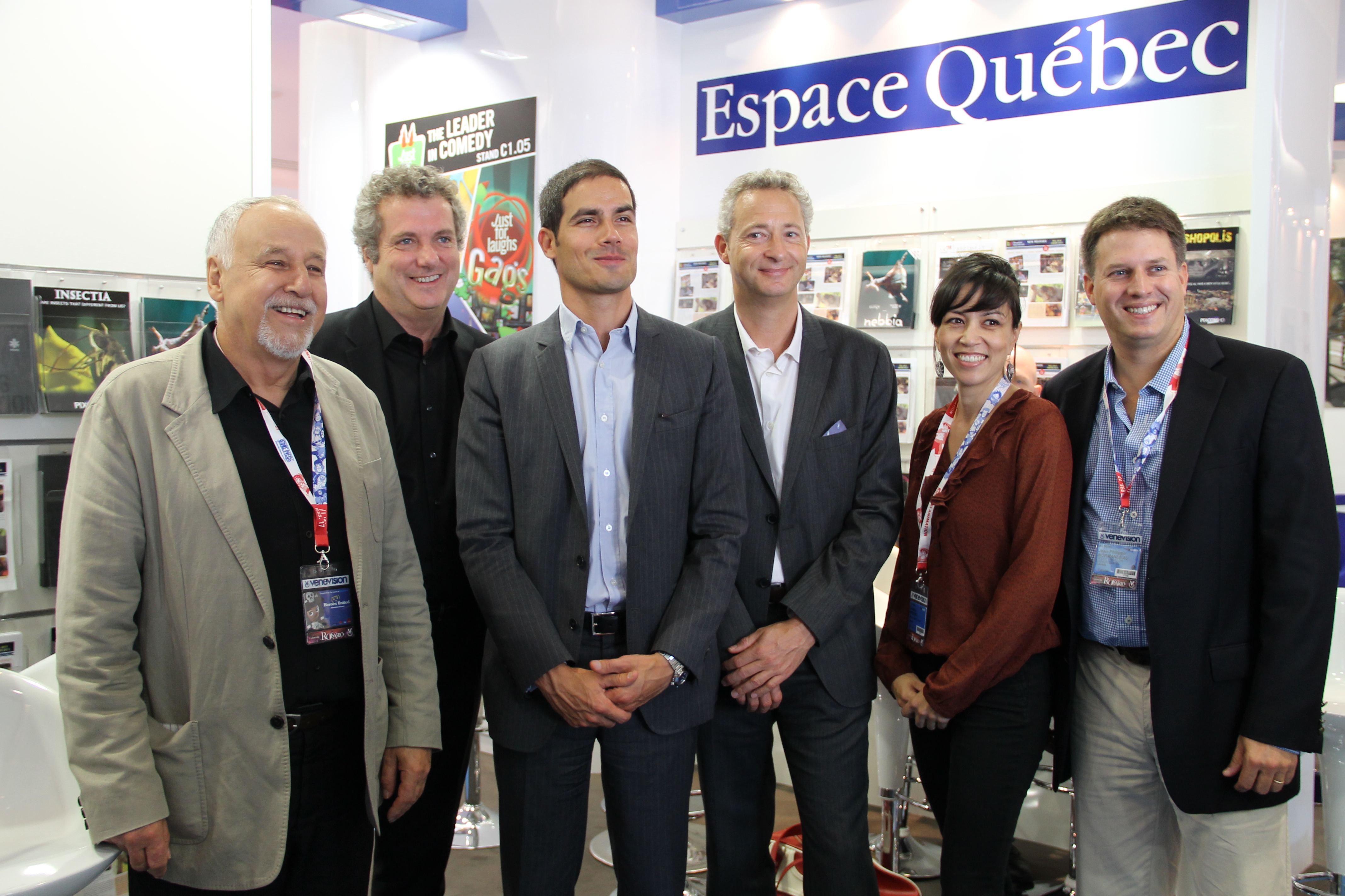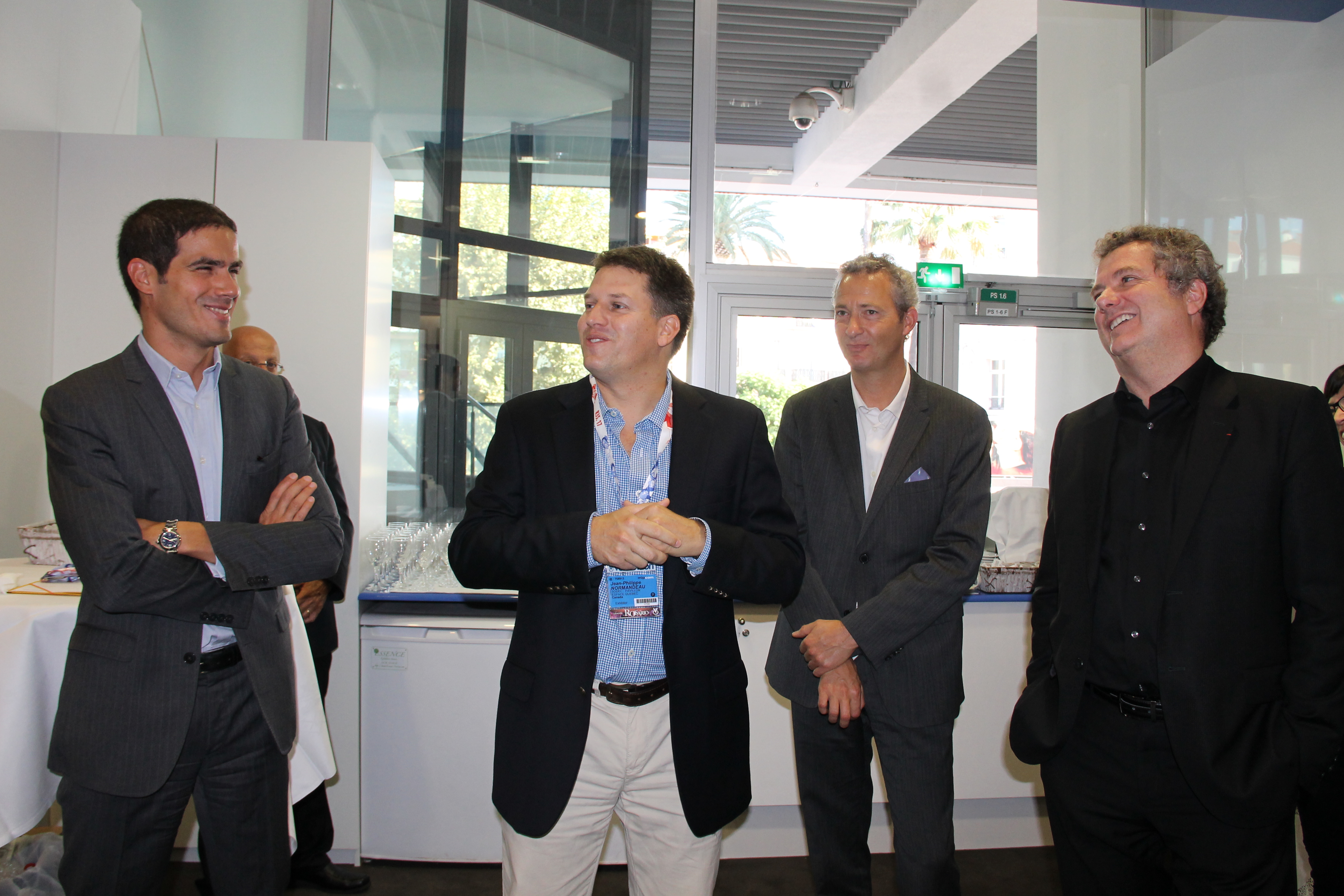 A l’occasion du MIPCOM, ce matin, à « l’Espace Québec », Jean-Philippe Normandeau, Mathieu Gallet, Silvain Lafrance, Serge Schick et Catalina Briceno étaient réunis pour sceller l’accord de partenariat entre Ina EXPERT et HEC Montréal.