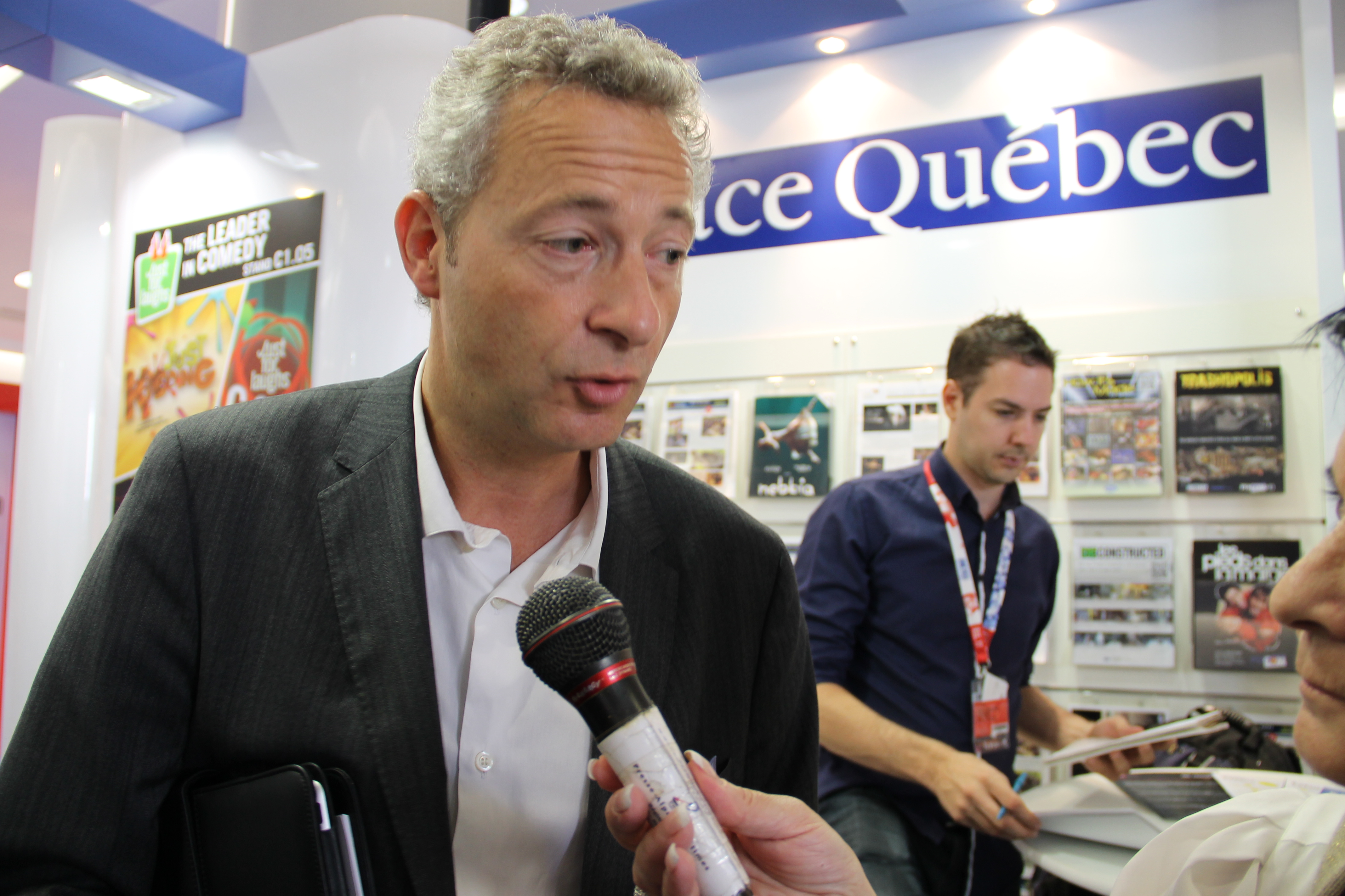 « Ce matin nous avons grand plaisir de vous accueillir sous notre grand chapiteau « Espace Québec » de la SODEC et de l’Industrie Québécoise de la télévision pour annoncer un partenariat qui nous est cher à la SODEC….