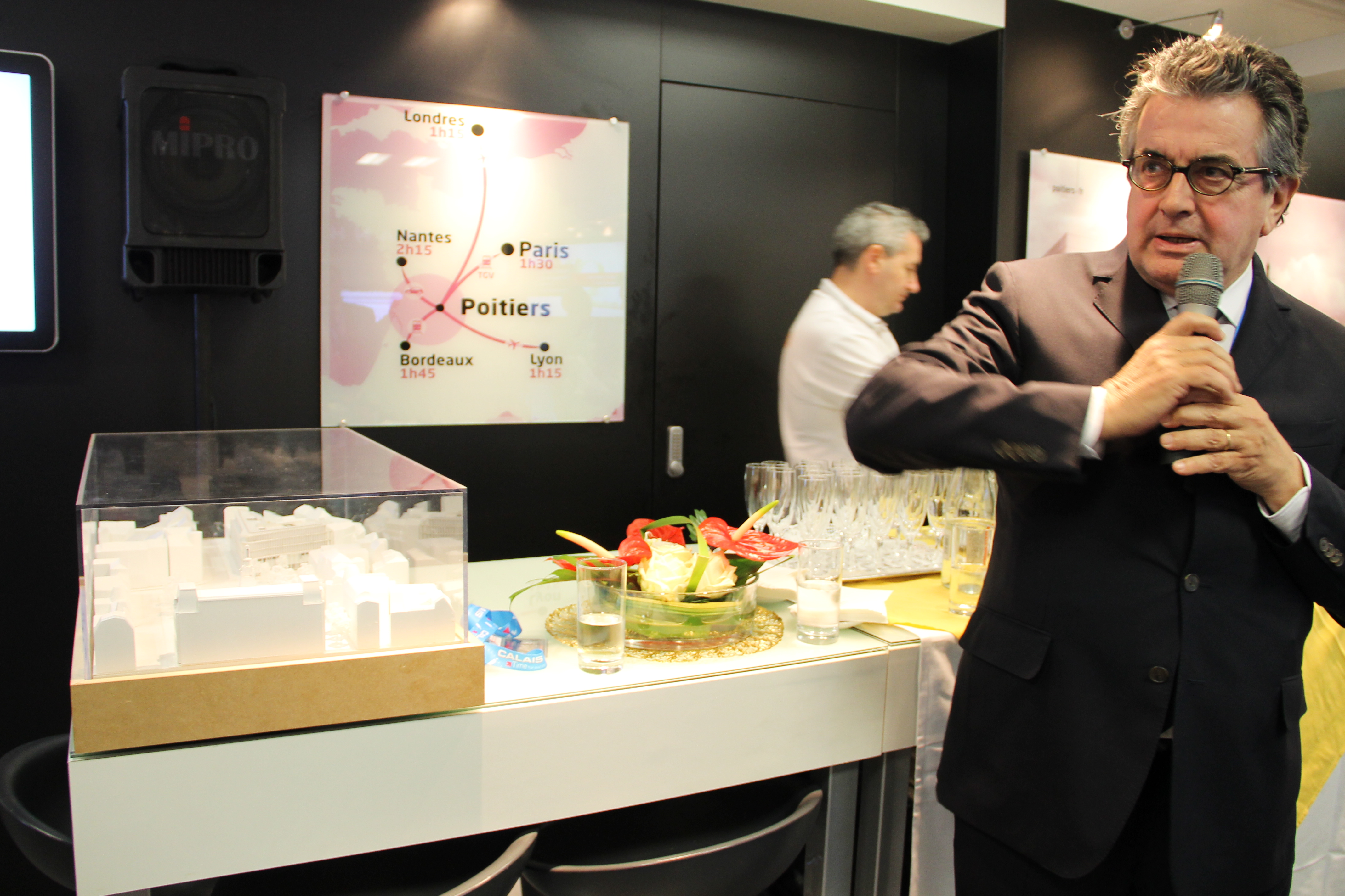 « Alain CLAEYS, est Député-maire de Poitiers, Président de l’Agglomération du Grand Poitiers et, avec ses élus et ses services il était présent au MAPIC pour la durée de ce salon. Ses objectifs: conquérir de nouvelles marques, qui ont leur place en centre ville, qui n’y sont pas encore aujourd’hui, conquérir les ensembles commerciaux qui amènent du flux et qui puissent faire venir hors des nations un certain nombre de concitoyens.