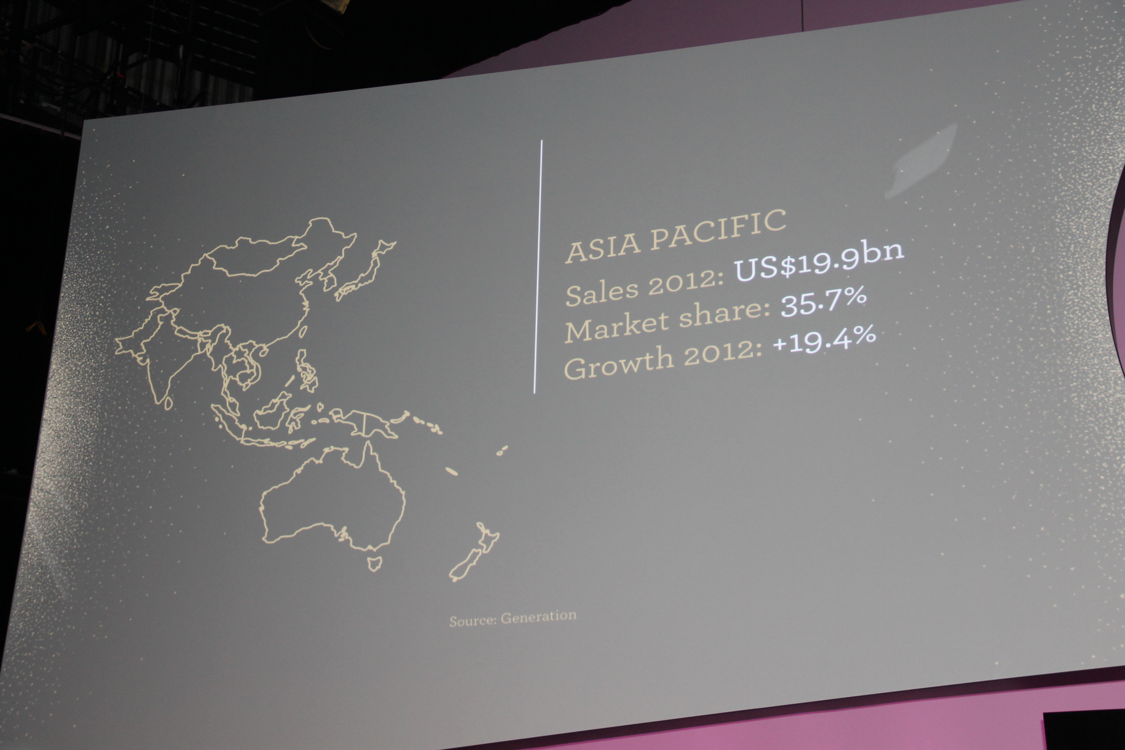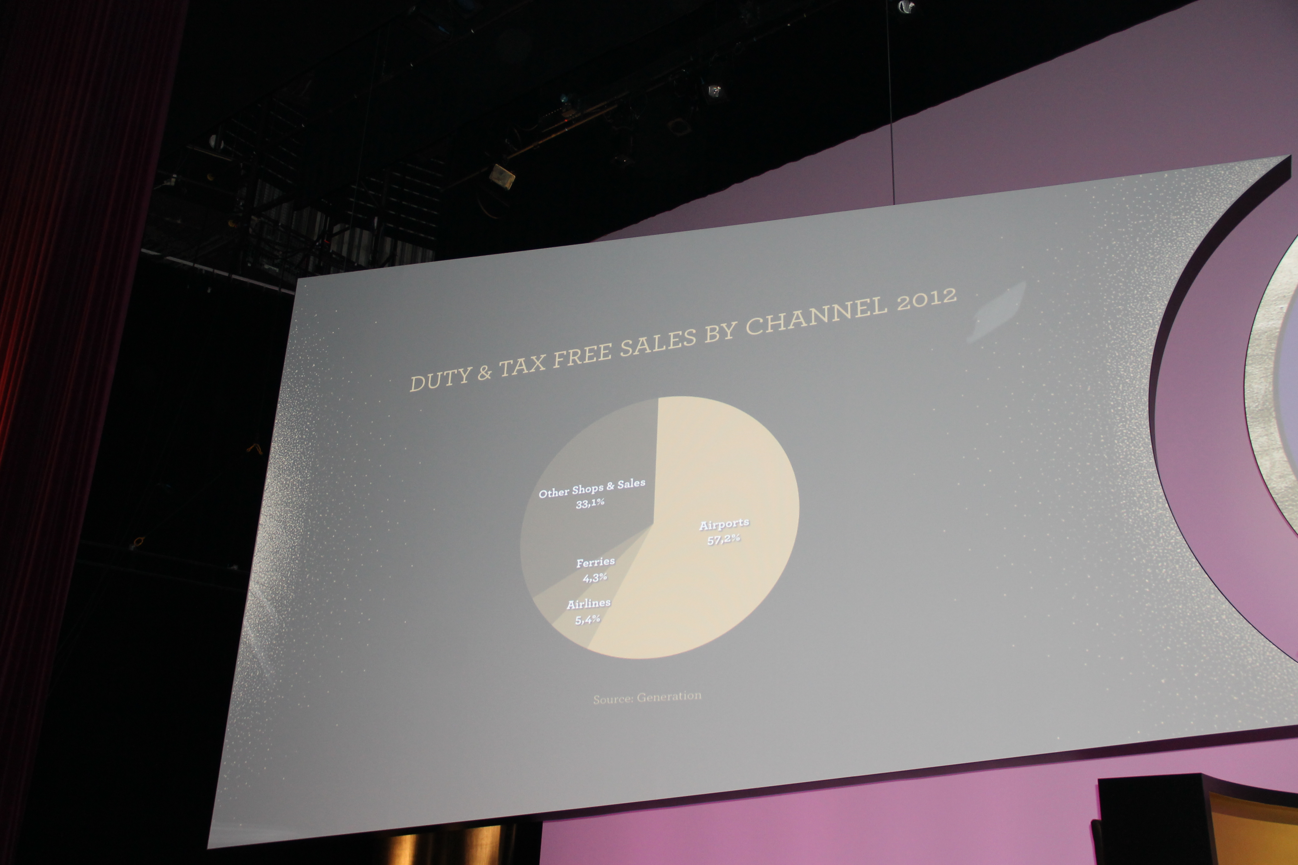 Erik Juul Mortensen, Président TFWA, a ouvert la conférence sur l’état annuel de l’industrie », puis il a résumé les statistiques et l’état de santé du « Duty Free » and « Travel Retail » par Generation Research : « Une fois de plus , malgré la conjoncture économique difficile globale concernant les produits détaxés et la vente au détail dans le secteur du voyage, nous assistons à une croissance, dépassant le nombre de passagers, avec des ventes en hausse de 9,4 % » nous a-t-il expliqué. De poursuivre: « Les ventes totales hors taxes mondiales pour 2012 étaient de 55,8 milliards $ US et les aéroports ont continué à garder la première place avec 57% des ventes . La catégorie la plus demandée est les parfums et les cosmétiques avec 28 %. L’Asie Pacifique a été une nouvelle fois la région avec la plus forte croissance des ventes 19,9 milliards US $ en hausse de 19 % par rapport à 2011″…