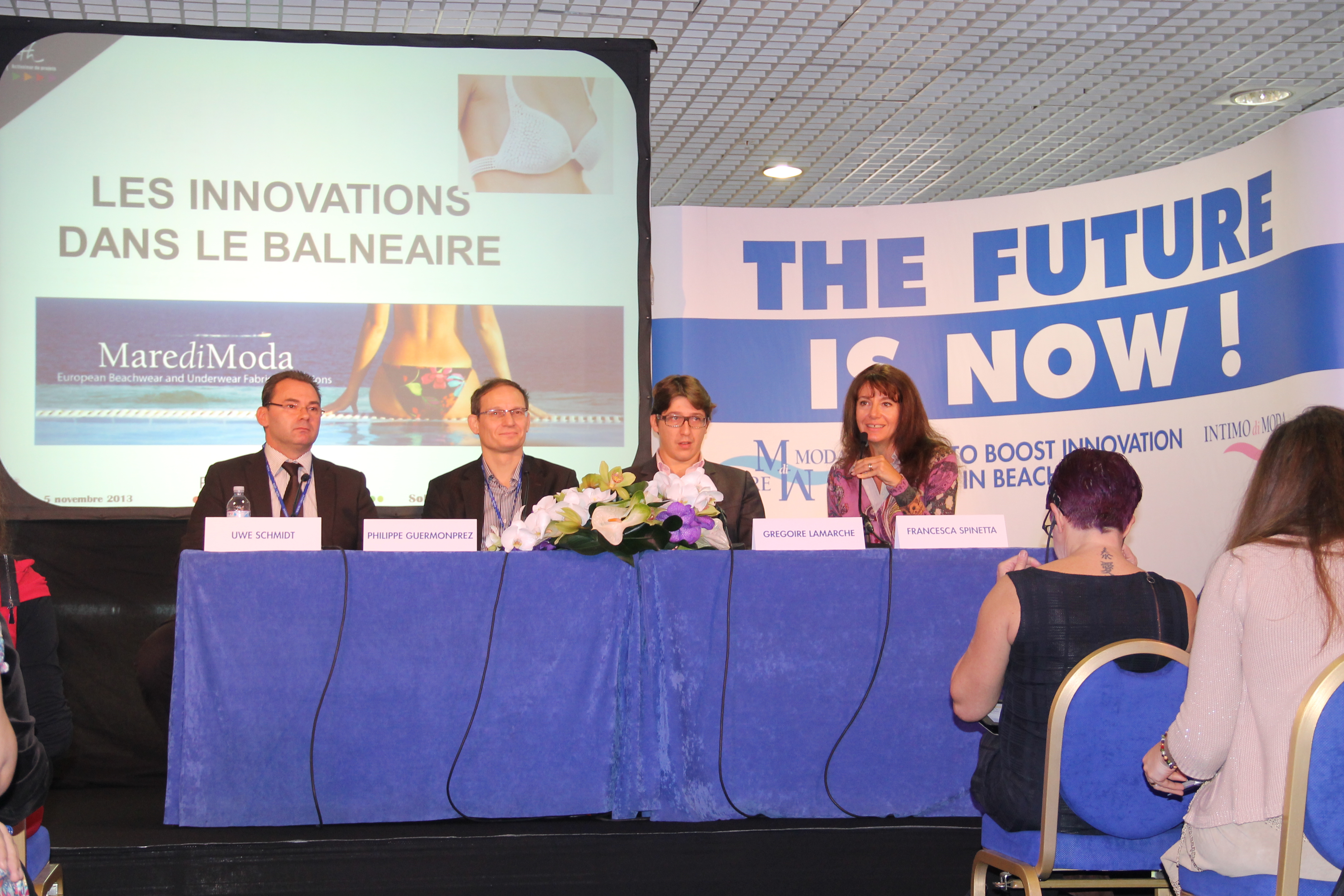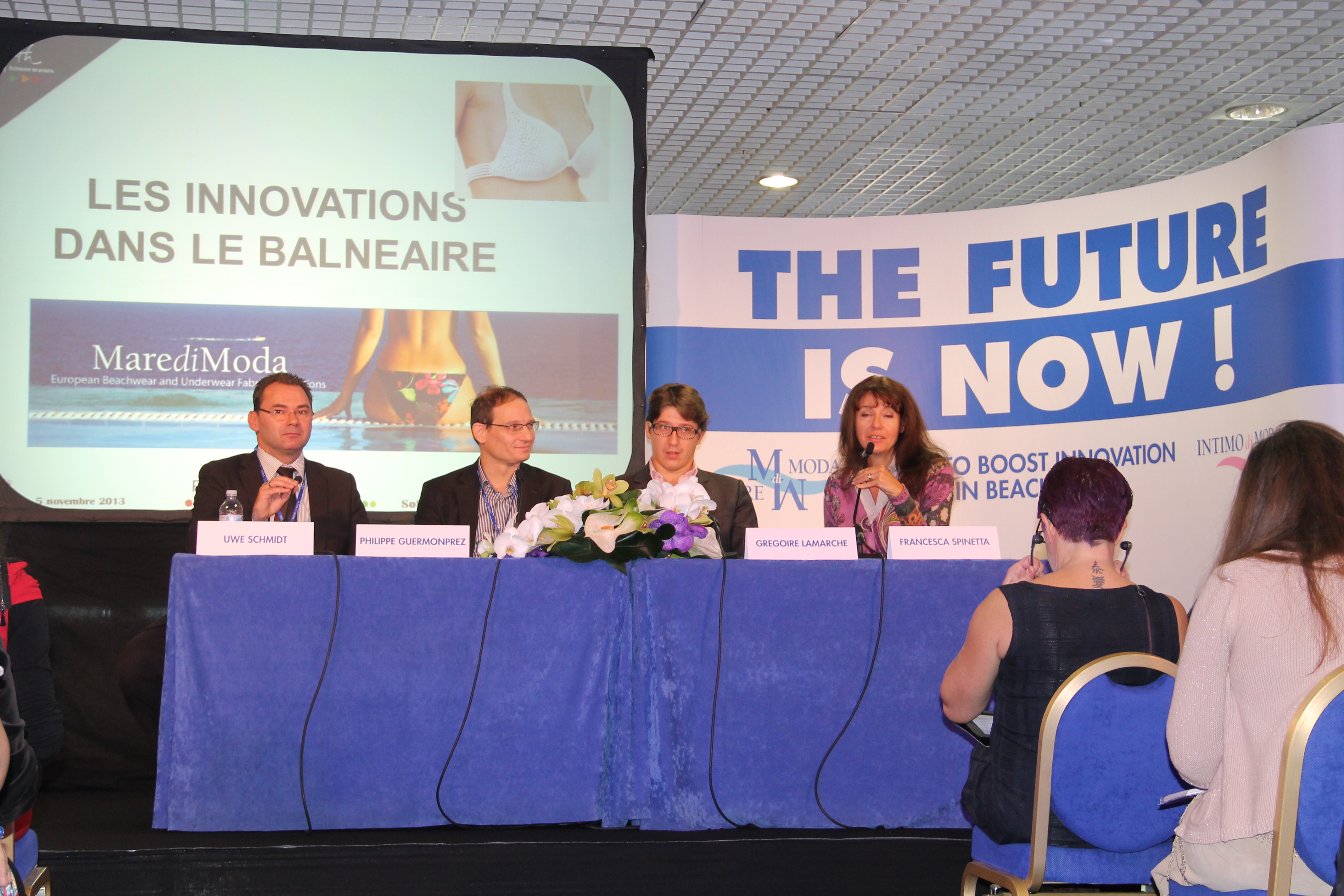 Uwe Schmitt Directeur – Asahi Kasei Spandex Europe GmbH, Philippe Guermonprez Expert textile intelligent et collective manager- IFTH R & D (Institut Français du Textile et de l’ Habillement ), Grégoire Lamarche Responsable Marketing & Communication- TOPSEC Equipement, Francesca Spinetta Président Rédacteur en chef Intima Groupe Réseau Dessous nous ont présenté toute une gamme de vêtements intelligents.