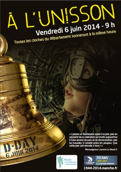 À l’occasion du 70e anniversaire du Débarquement et de la Libération, le Conseil général de la Manche et le Diocèse de Coutances et Avranches ont signé ensemble un partenariat pour que résonne l’ensemble des cloches du département au matin du 6 juin 2014 à 9h.