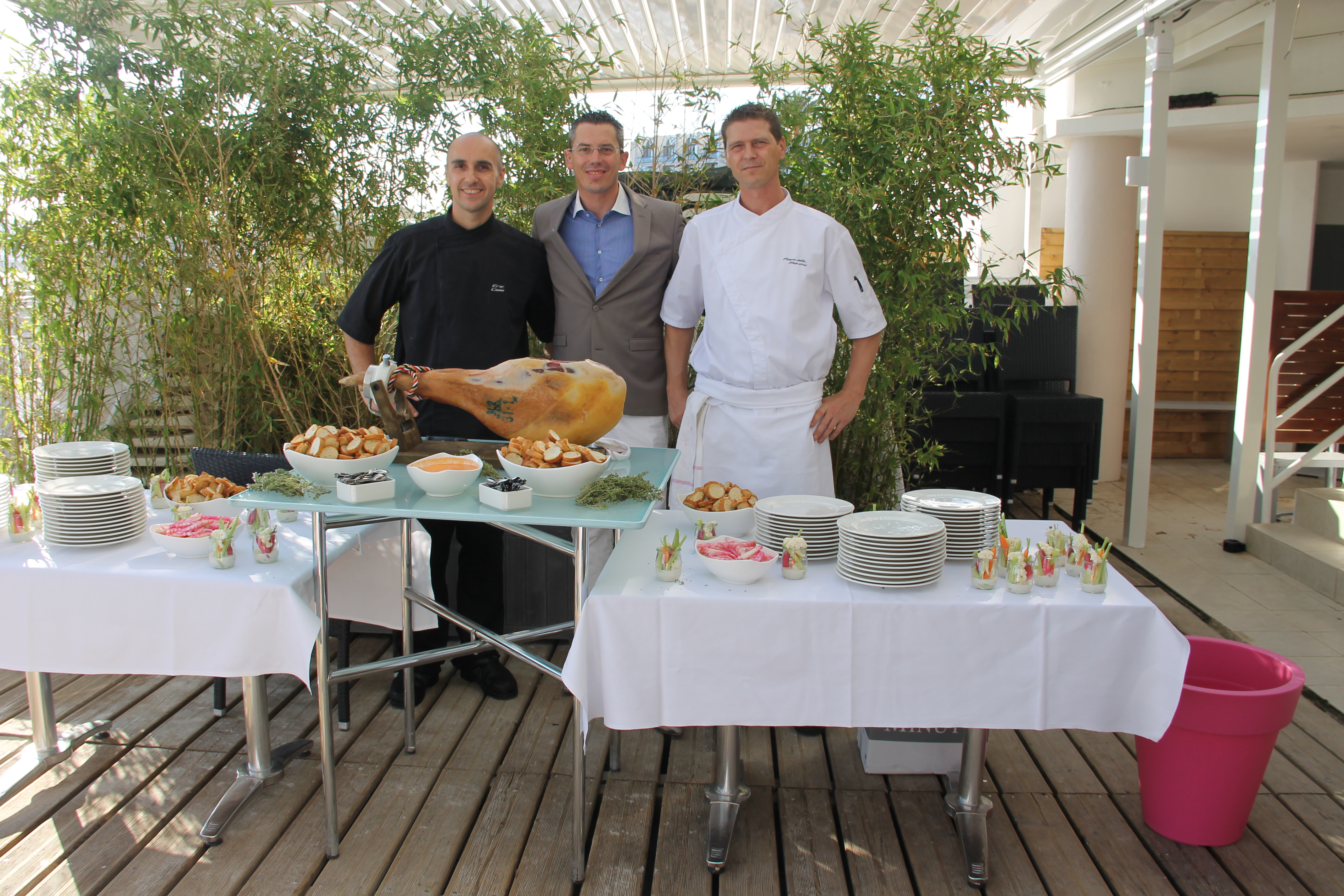 En introduction, Monsieur Charles RICHEZ, Directeur Général chez AC Marriott Ambassadeur d’Antibes Juan les Pins, et Directeur des Opérations au JW Marriott Cannes nous informait qu’il s’agit de la deuxième saison pour cette plage, laquelle a connu de nombreux aménagements, et de présenter son équipe (voir photos) dirigée par William ABELLO, Directeur de la Restauration et Directeur Général Adjoint du AC Marriott Ambassadeur.