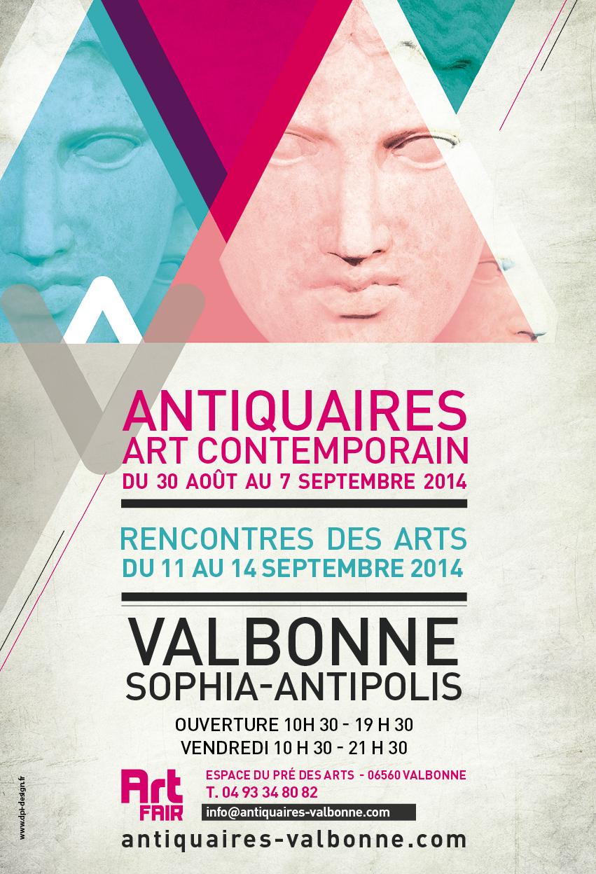 Le Salon d’Antiquités, Art Moderne et Contemporain de Valbonne sera suivi par les 12èmes Rencontres des Arts, salon qui se déroulera du 11 au 14 septembre 2014 (horaires : 10h30-19h30 et nocturne le vendredi jusqu’à 21h30) dans le même site et qui réunira galeries, artistes, artisans d’art… (Entrée libre).