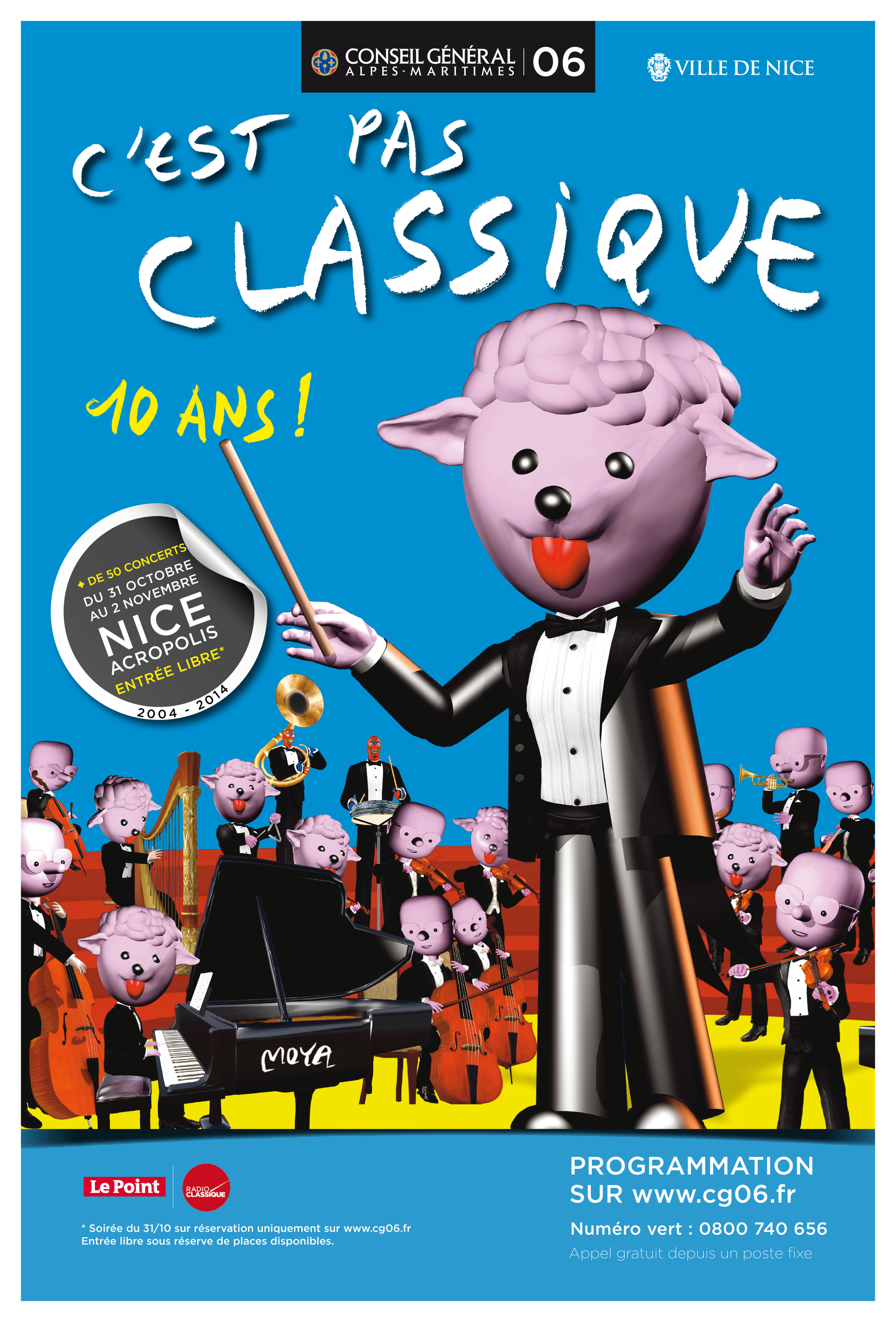 C’est pas classique, organisé par le Conseil général des Alpes-Maritimes, met les petits plats dans les grands pour son dixième anniversaire qui se déroulera du vendredi 31 octobre au dimanche 2 novembre au Palais Acropolis de Nice. Plus d’une cinquantaine d’artistes se succèderont sur scène lors de concerts mais aussi de spectacles, pièce de théâtre, ateliers et expositions. Toutes les générations se rassembleront autour de l’amour de la musique classique !
