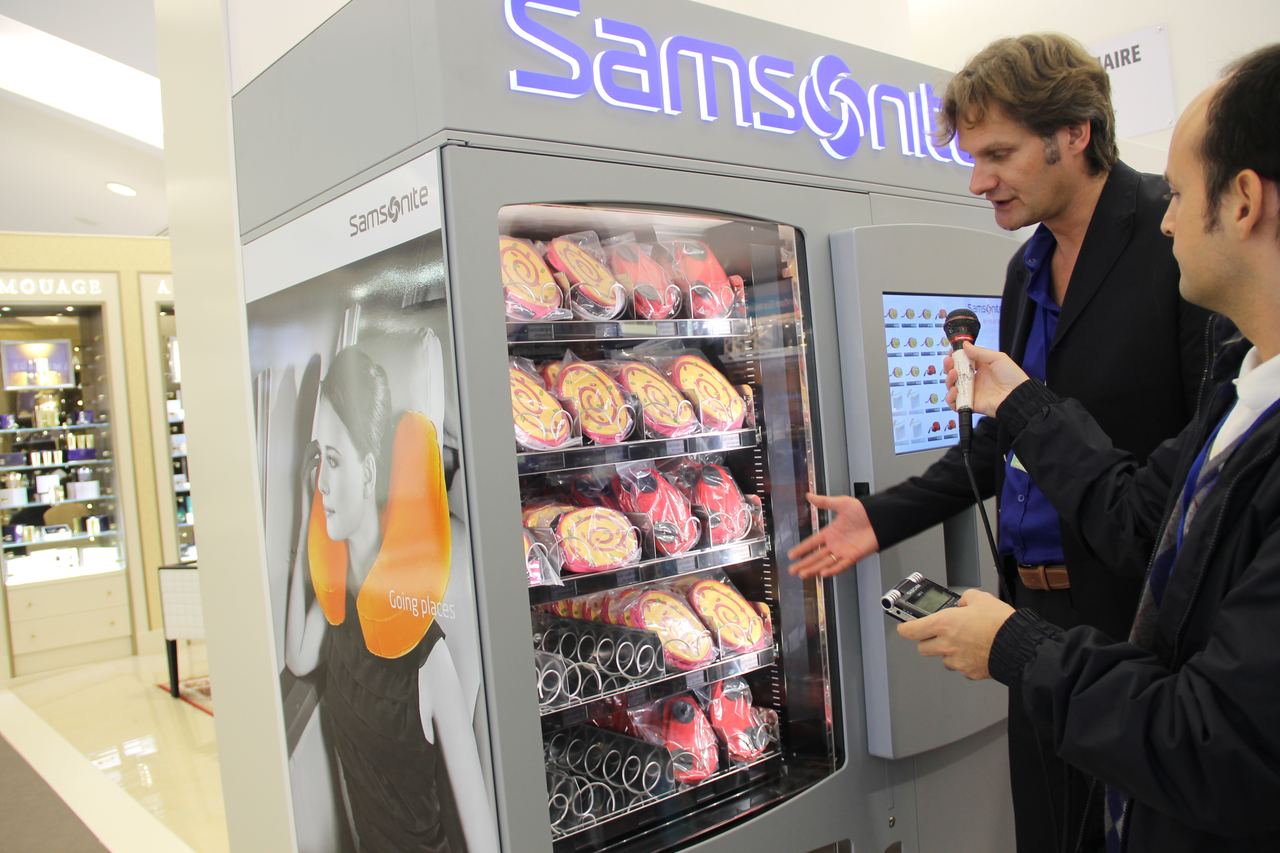 Cette année, dans le cadre du Salon TAX FREE 2013 qui se tenait à Cannes, je tenais à revenir sur le stand de la maison SAMSONITE laquelle présente ses nouveaux distributeurs pour les voyageurs, un condensé de technologies ludique, rapide, économique, à toute heure, facile d’utilisation, sur un même lieu avant l’embarquement .