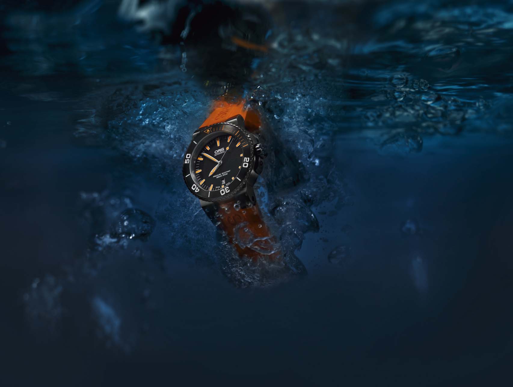 Son boîtier de 43 mm de diamètre en acier inoxydable revêtu de PVD gris « Canon de fusil » assure une étanchéité jusqu’à 300 mètres / 30 bars et est muni d’une couronne vissée avec dispositif de protection. Animé par un calibre mécanique, à l’instar de toutes les montres Oris, ce nouveau modèle est équipé d’un mouvement à remontage automatique « trois aiguilles– date à 6h ». Coordonné à la spécificité chromatique des éléments luminescents, le bracelet en caoutchouc hydrophobe orange est pourvu d’une boucle déployante avec fermoir de sécurité et système de rallonge garantissant une tenue optimale au poignet et un ajustement aisé sur une combinaison de plongée.