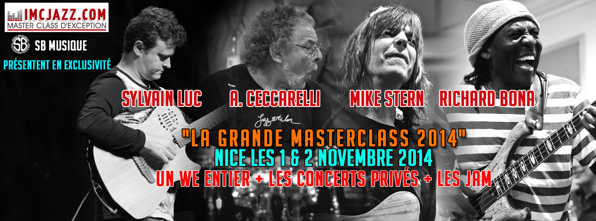 Richard BONA, Mike STERN, André CECCARELLI, Sylvain LUC, se produisent en concert le vendredi 31 Octobre 2014 au théâtre Lino Ventura à Nice et animent une masterclass à Nice le 1er et le 2 novembre 2014, organisée par imcjazz.