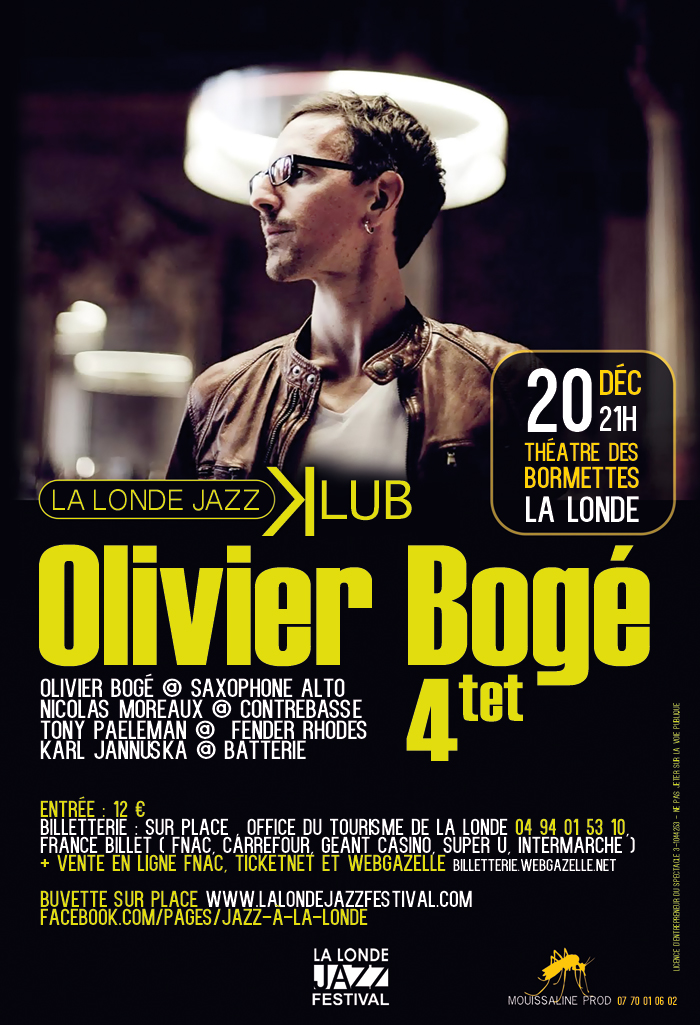 Olivier Bogé 4tet – Samedi 20 décembre 2014 – 21h – La Londe