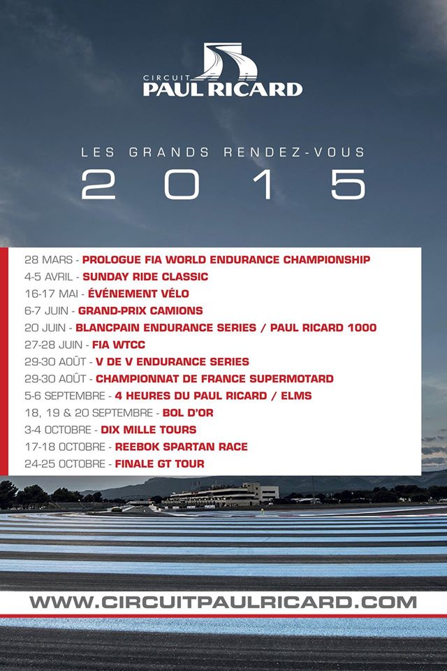 Le calendrier 2015 des événements sportifs se déroulant au Circuit Paul Ricard est désormais officiel.