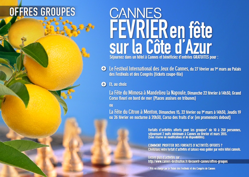 • Trois événements phares en février 2015 complètent l’offre groupe : Cannes Février