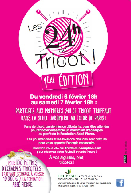 TRUFFAUT convie toutes les bonnes volontés à participer aux premières 24h du Tricot dans la seule jardinerie en plein coeur de Paris ! L’occasion de partager un bon moment et d’œuvrer pour une bonne cause.