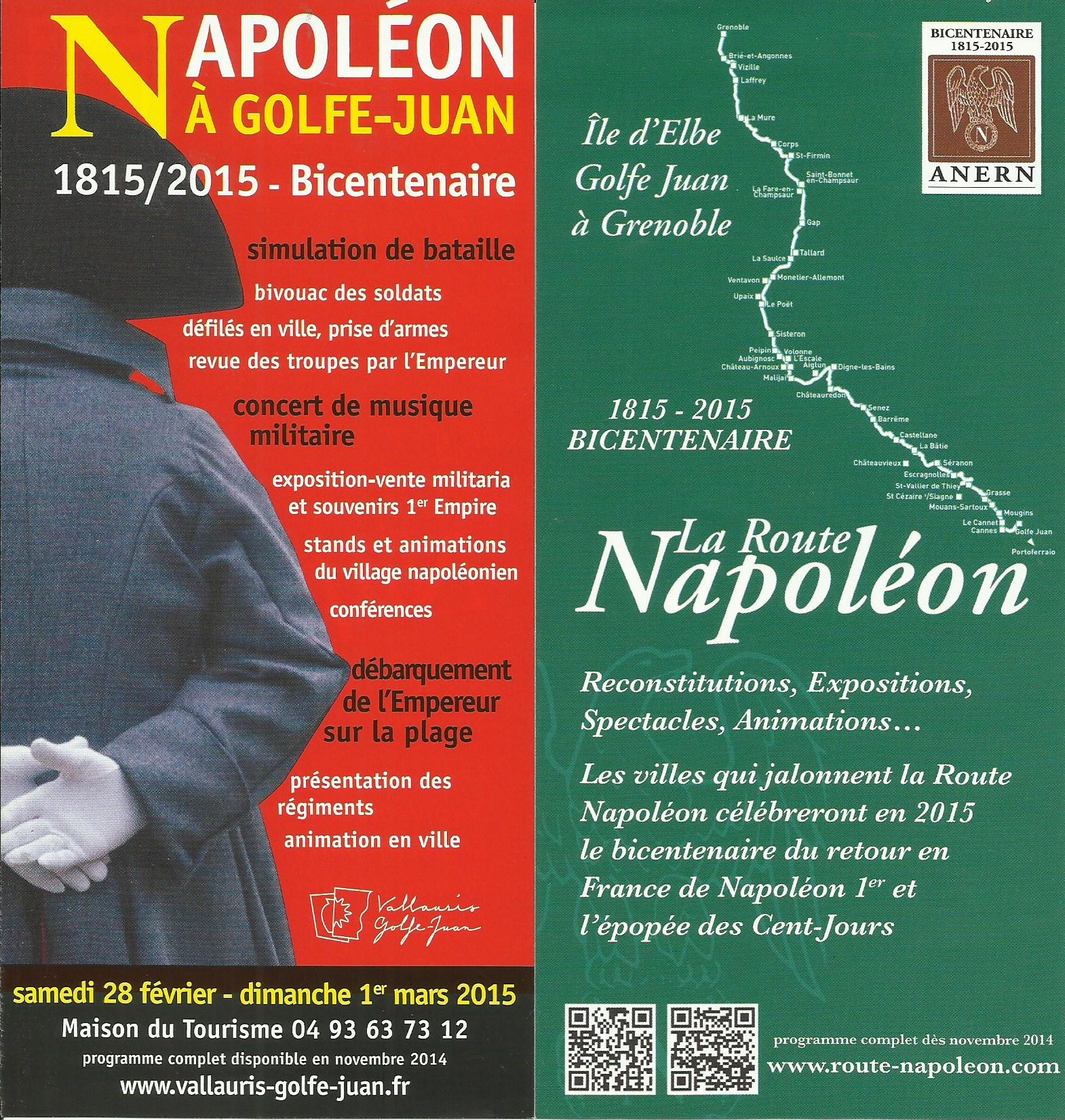 Prochaines manifestations organisées dans le cadre de l’année du bicentenaire à Golfe-Juan du lundi 23 février au lundi 2 mars 2015