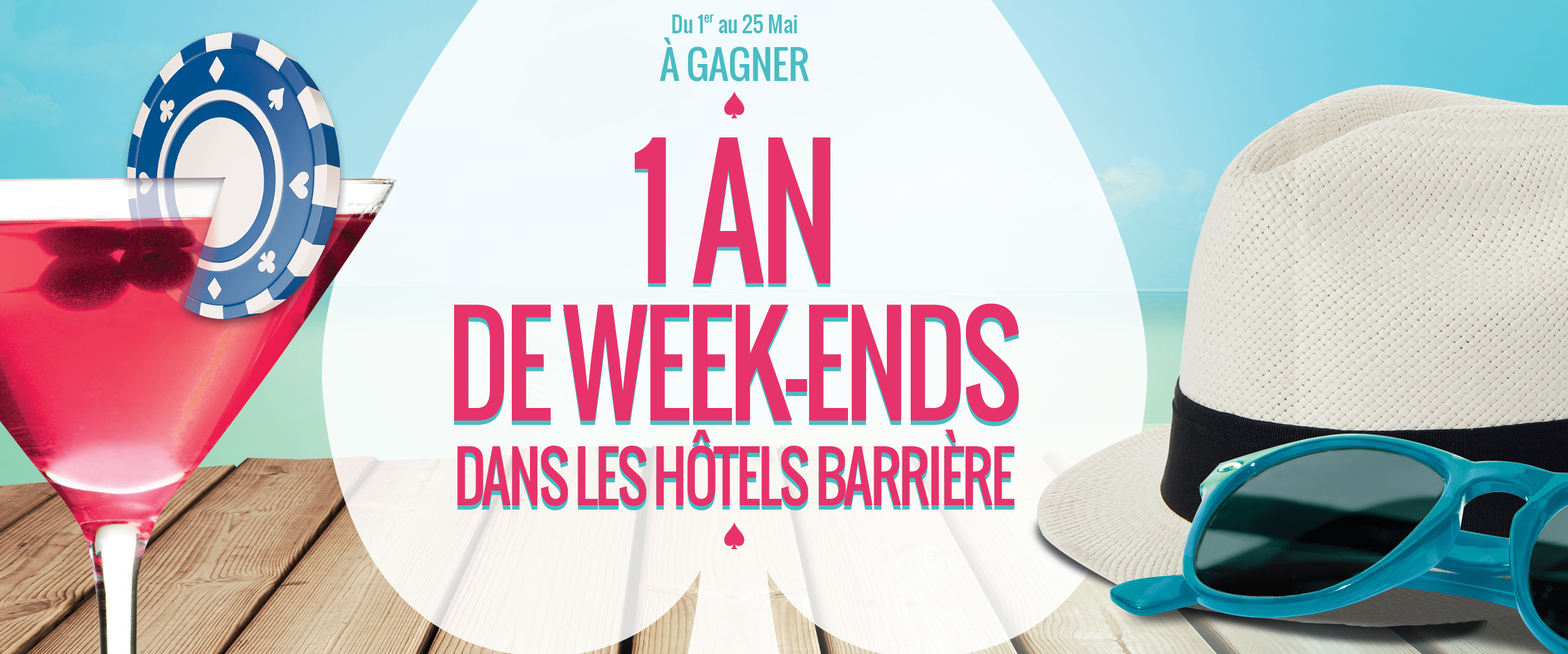 A l’occasion du printemps, les Casinos Barrière* vous invitent à venir tenter votre chance chaque pont de mai** pour peut-être gagner 1 an de week-ends dans les Hôtels Barrière*** !