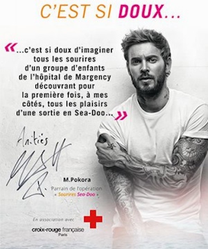BRP et la Croix-Rouge de Paris s’associent au chanteur M. Pokora pour faire sourire les enfants malades de l’Hôpital d’Enfants Margency, en région parisienne, en les initiant aux plaisirs de la motomarine Sea-Doo. L’événement aura lieu en juin 2015. L’annonce a été faite dans le cadre de Nautic, le Salon nautique international de Paris, à Porte de Versailles.