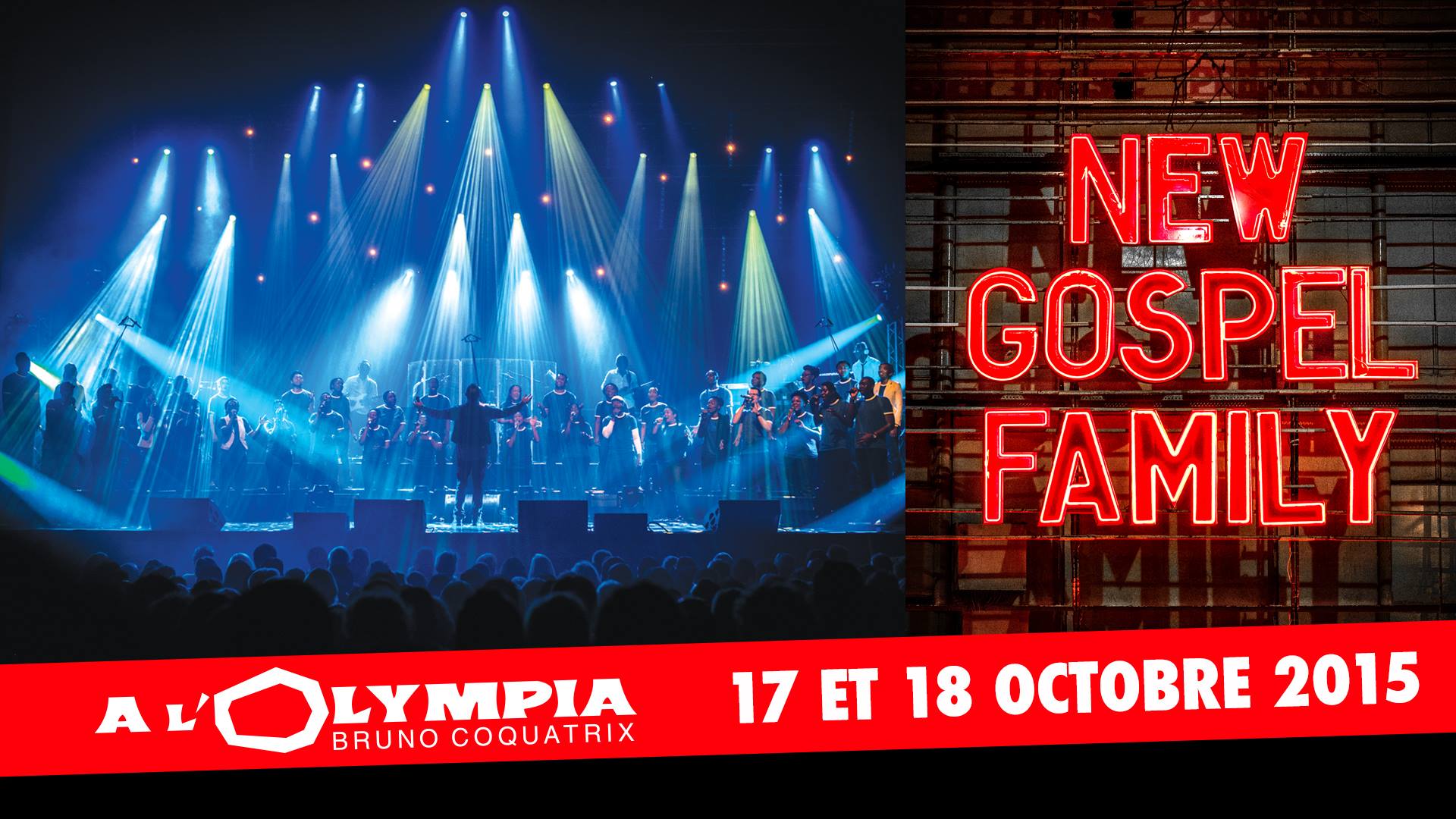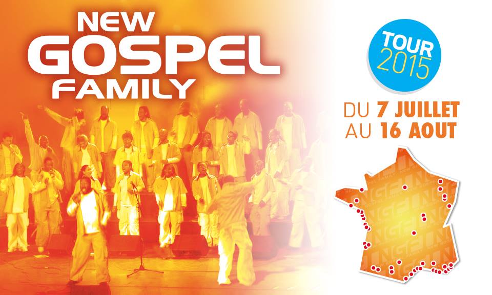 DU 7 JUILLET AU 18 OCTOBRE 2015 après 14 ans d’existence et plus de 850 concerts, NEW GOSPEL FAMILY repart sur les routes françaises pour une tournée de près de 50 dates. Elle se terminera à l’OLYMPIA à Paris, avec la troupe au grand complet, pour 2 concerts événement les 17 et 18 octobre 2015.