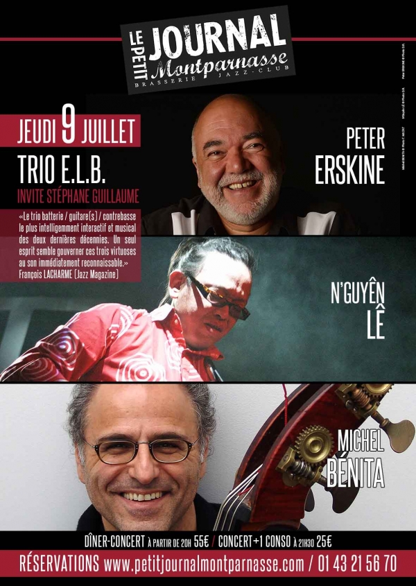 Peter ERSKINE (Weather Report, Joni MITCHELL, Steely Dan, Diana KRALL,…), Nguyên LÊ (Quincy JONES, Gil EVANS,…) et Michel BÉNITA (Lee KONITZ, Erik TRUFFAZ,…) se rencontrent pour un concert unique au Petit Journal Montparnasse !
