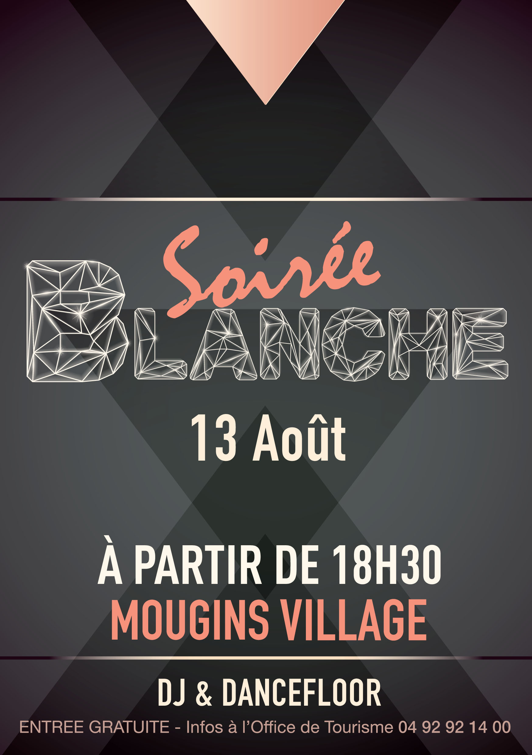 A 20h30, le jeudi 13 Août 2015, au village de Mougins, venez nombreux à la soirée blanche !
