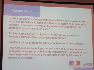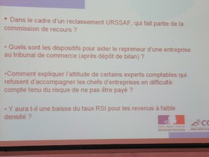 Pour répondre aux questions, notamment, Gérard Fisari, Directeur Adjoint à la DDTEFP, Christian Toulouse, Directeur Adjoint de l’URSSAF, Frédéric Fischer, Adjoint au Directeur Recouvrement et Relations Extérieures ont mis leurs compétences au service des personnes présentes.