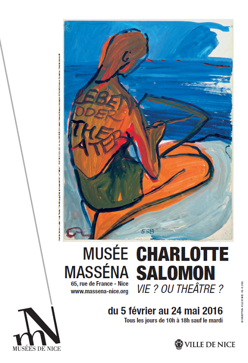 Cette exposition intitulée Charlotte Salomon Vie ? ou Théâtre ?, réalisée en collaboration avec le Jewish Historical Museum d’Amsterdam, propose de découvrir des originaux, gouaches, dessins, pastels et archives inédits de Charlotte Salomon. Présentée au Musée Masséna du 5 février au 24 mai 2016, elle sera inaugurée par Christian Estrosi, Président de la Région Provence Alpes Côte d’Azur et Maire de Nice et David Foenkinos, écrivain, auteur du roman Charlotte, le jeudi 4 février 2016 à 19 heures.