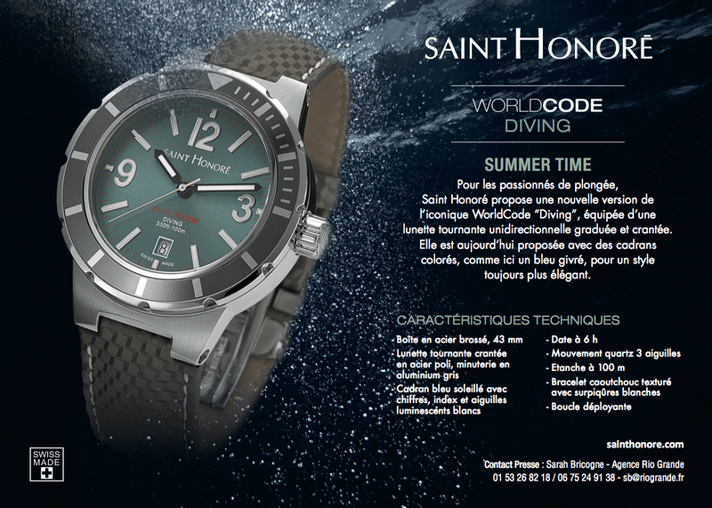 SAINT HONORE propose cette année sa célèbre montre Worldcode « Diving » dans des versions plus colorées.