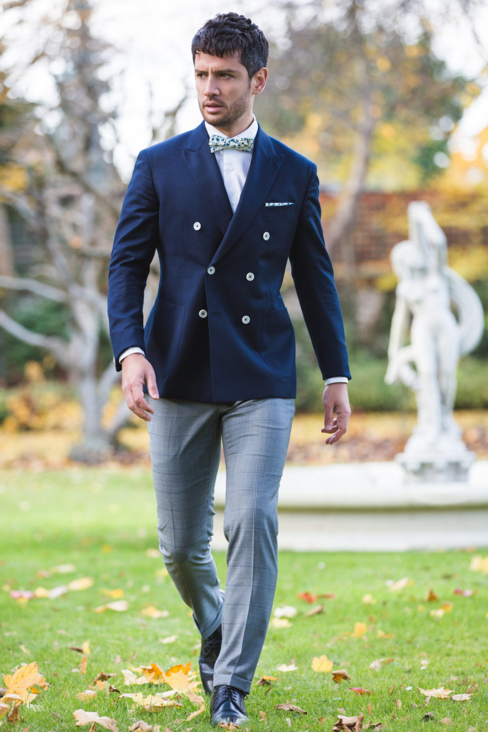 L’originalité de ce look réside aussi dans l’utilisation des boutons blancs, qui ressortent sur le bleu de la veste croisée. Cette dernière a longtemps été la veste du gentleman parfait. Considérée par certains comme démodée, elle est aujourd’hui de plus en plus appréciée des dandys du 21ème siècle.