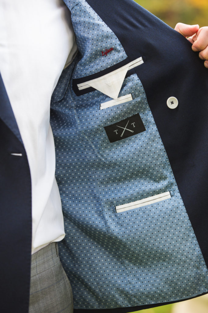 « Nous voulions un look classe mais avec un esprit dandy un peu décalé. C’est la raison pour laquelle nous avons opté pour une tenue dépareillée » précise Johann Allaf, co-fondateur de Tailor Trucks. « Nous avons aussi voulu donner encore plus d’originalité grâce au sur-mesure en intégrant une doublure à motifs géométriques dans les mêmes teintes ».