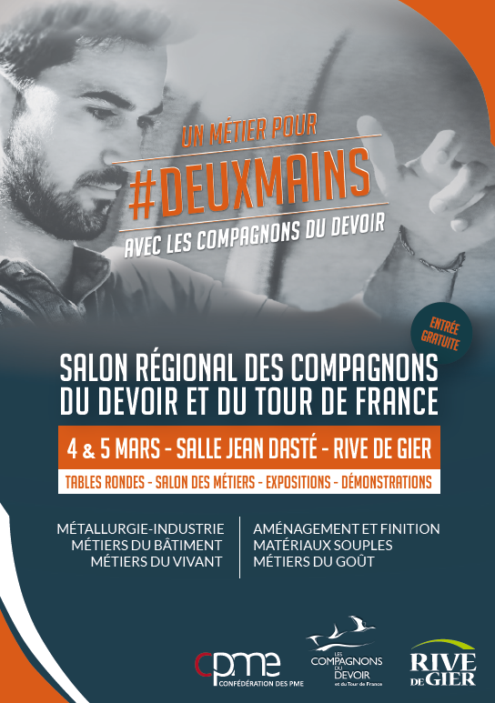 La Ville de Rive de Gier (42) et les Compagnons du Devoir et du Tour de France s’associent pour créer le premier salon régional dédié aux métiers et à l’apprentissage. Organisé du 3 au 5 mars à la Salle Jean Dasté à Rive de Gier, ce salon vise à promouvoir la voie de l’apprentissage. Avec une hausse de 21% de contrats d’apprentissage en Auvergne et de 16% en Rhône-Alpes en 2016, la