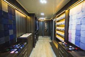 Cet espace permet aux clients de découvrir les nombreux tissus hauts de gamme proposés par Tailor Trucks, de découvrir la qualité de confection et surtout de recevoir les conseils avisés de spécialistes.