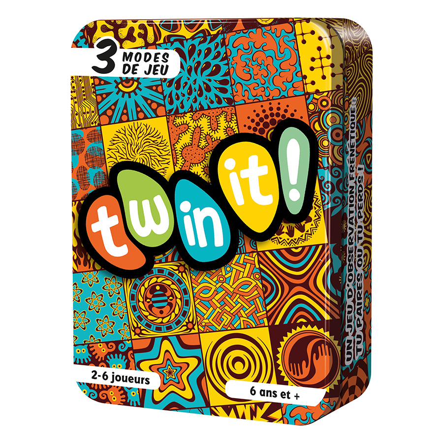 A Twin it, les cartes s’accumulent sur la table en formant une mosaïque colorée. Votre but ? Essayer de détecter plus vite que les adversaires les paires de cartes aux motifs exactement identiques ! La plupart des motifs sont en double, certains sont en triple et quelques pièges sont uniques !